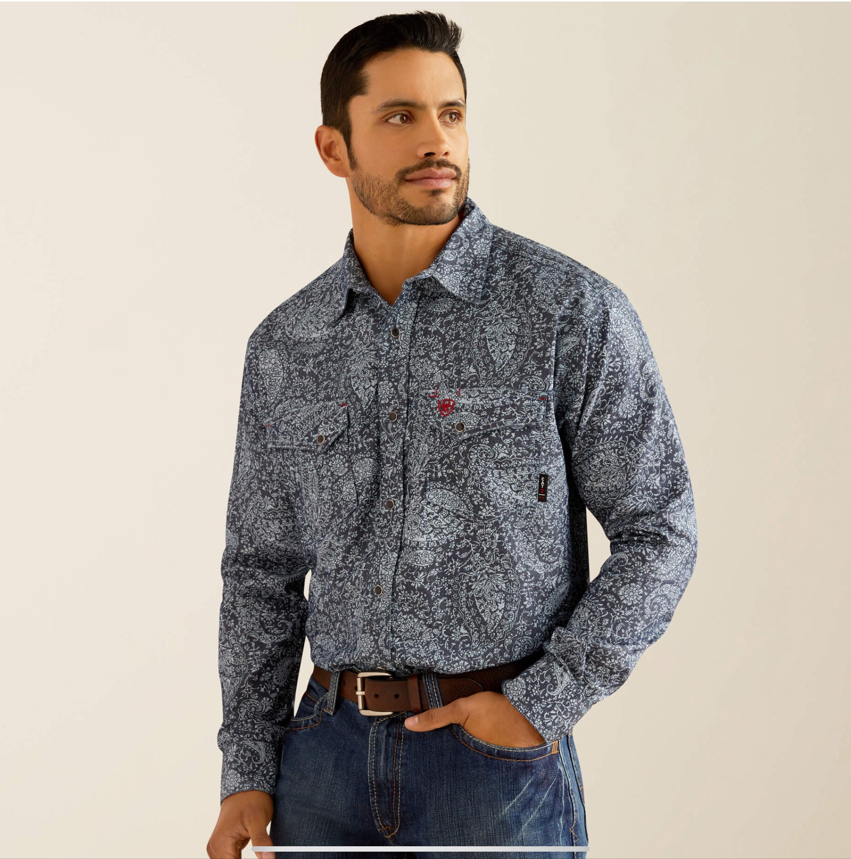 Our flame-resistant, snap work shirts pair iconic Western details with quality construction and a comfortable, more generous fit than our Retro. Built with the safety features you need in hazardous work environments, but works great off the clock too.