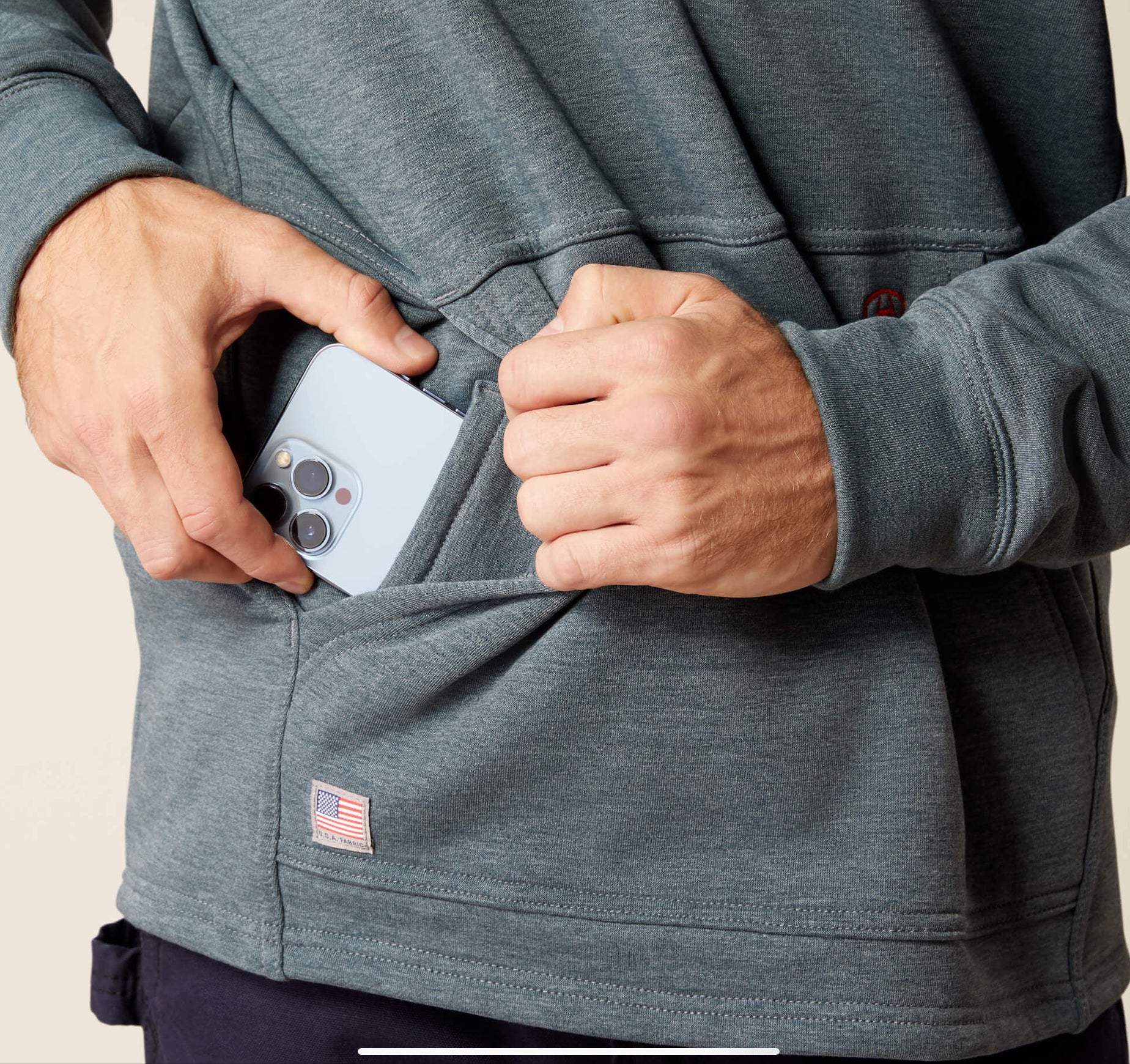 Our FR Primo collection delivers on-the-job protection using premium, inherently flame-resistant materials. Ultra-soft and ultra-durable, this fleece is 3X more wind-resistant than cotton fleece of the same weight. Built-in stretch and must-have details, like a hidden phone sleeve, make it an instant favorite.