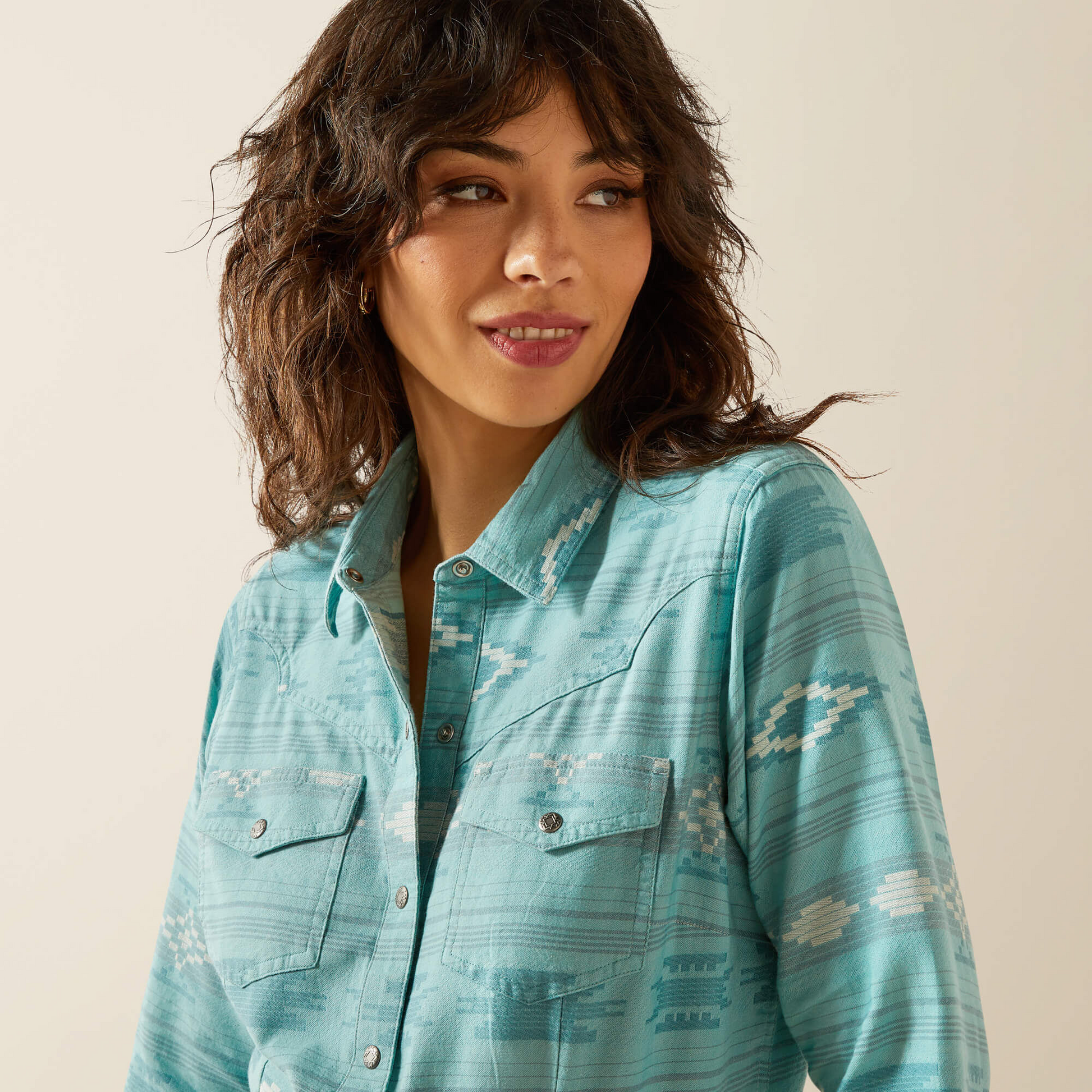 A wardrobe staple, our snap shirt belongs in every cowgirl's closet. Authentically styled with pearl snaps and Western yokes, it looks good whether it's dressed up or covered in dust.