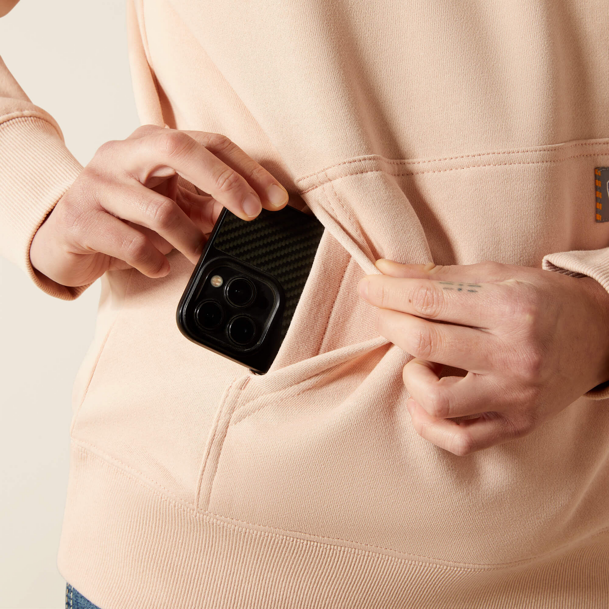 Full of function and substance fit for the job. This hoodie is made of soft fleece with a water-repellent finish. Expert seam construction makes it easy to move in, work in. Includes half-zip styling for easier in/out access and a media pocket hidden within the kangaroo pocket.