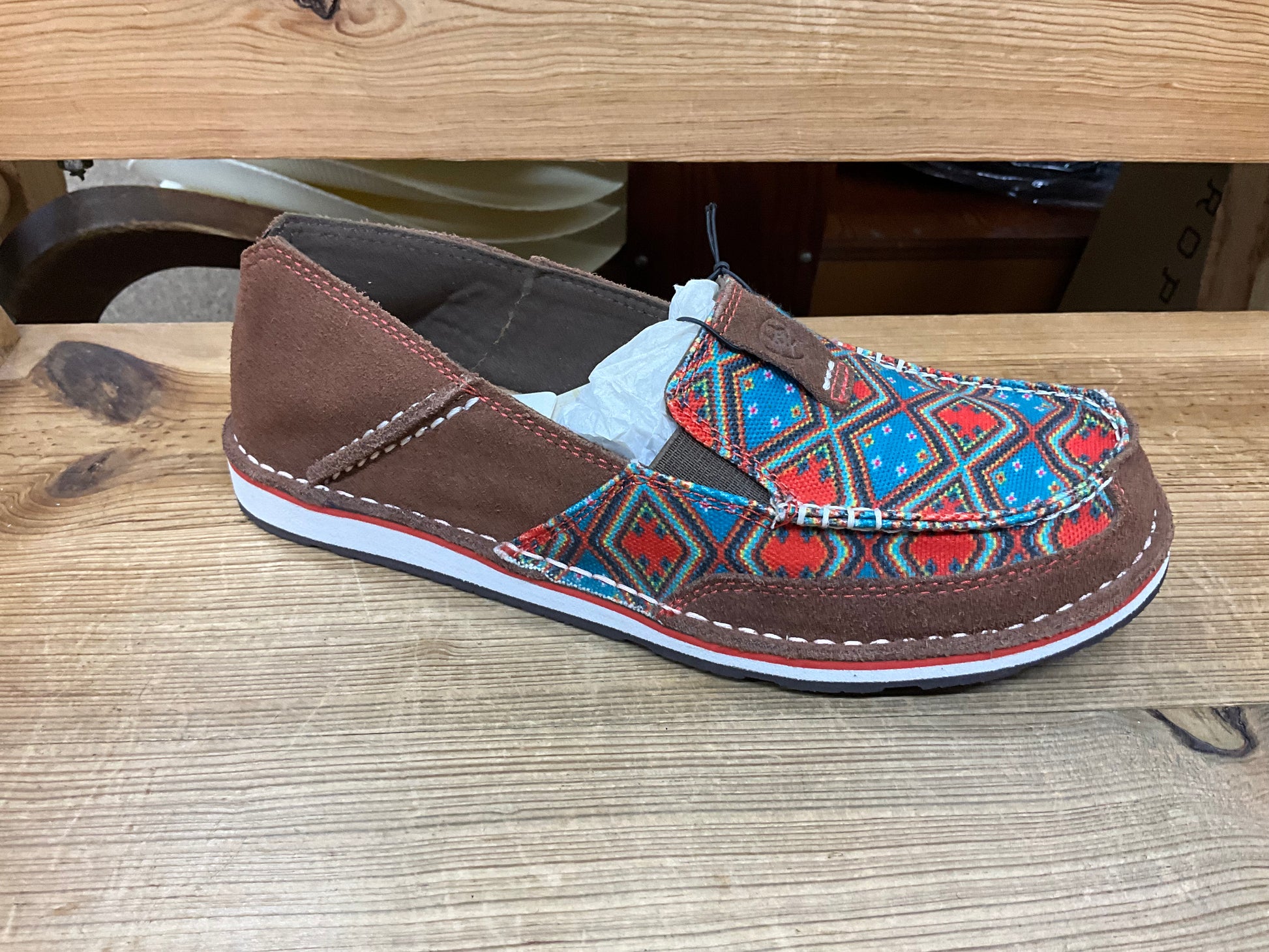 Slip on cruiser Saddle/tan suede and Aztec print