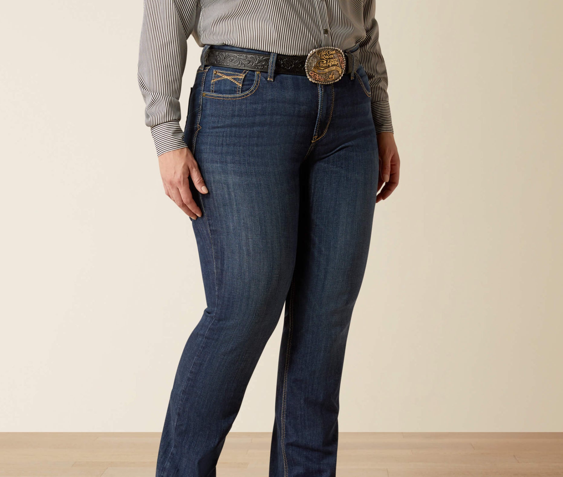 This easy, everyday jean nods to Western heritage with its classic boot-cut fit and eye-catching back pocket. The dark wash goes with graphic tees to performance tops and will look so good with your favorite boots.