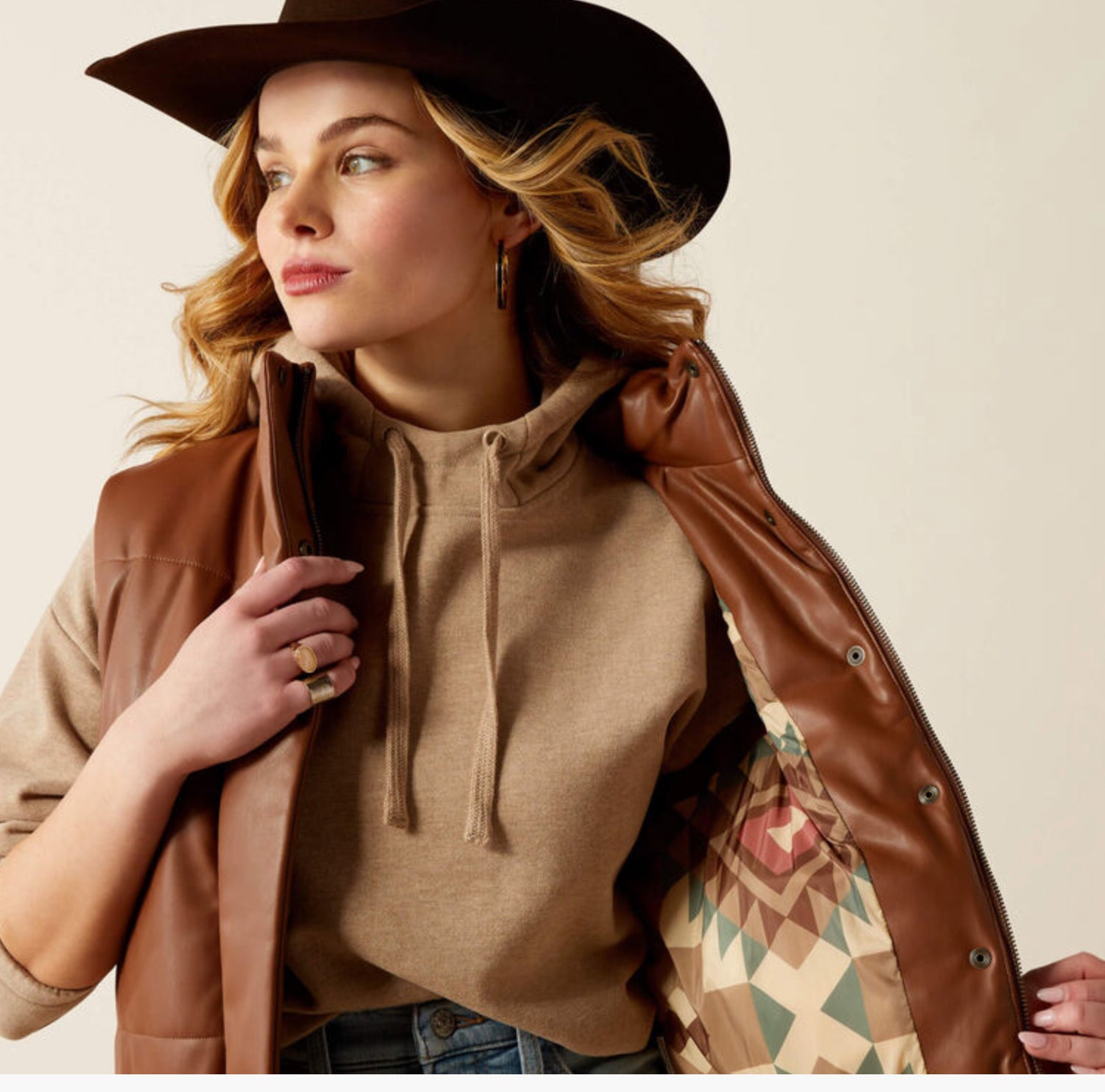 CalloutsLadies’ | 2-way Zipper | Water Resistant | Inside Security Pocket | Princess Seams | Zip Hip Pockets | Stand Collar | Quilted | Dropped Tail Hem for Extra Coverage