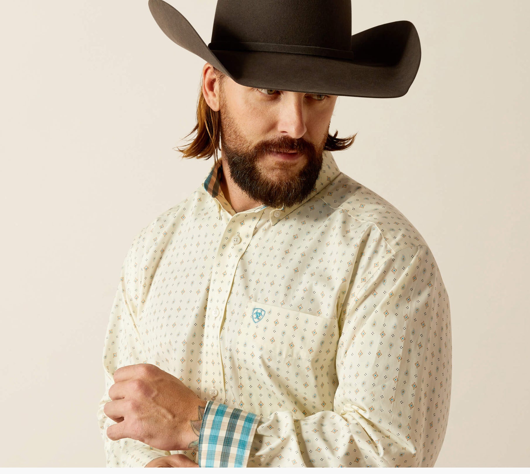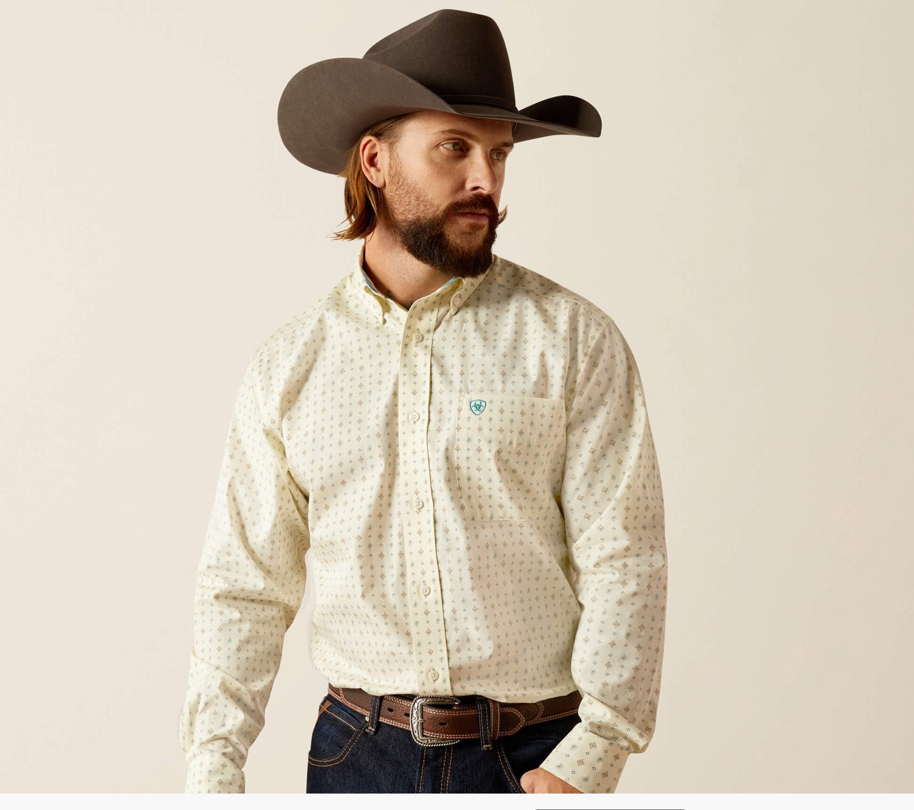 - Ariat® branding on pocket and back neck