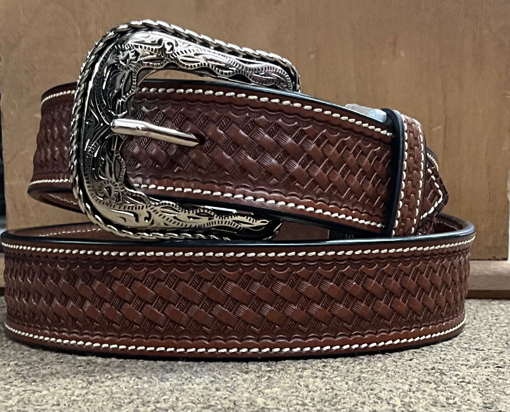 1 1/2'' Chestnut Western Basketweave Belt