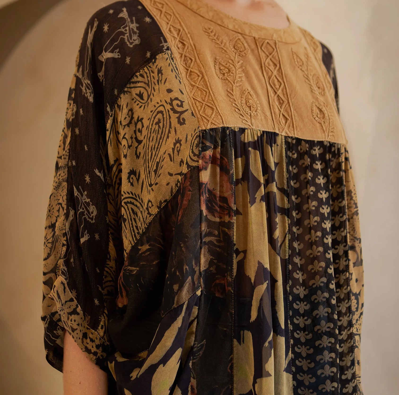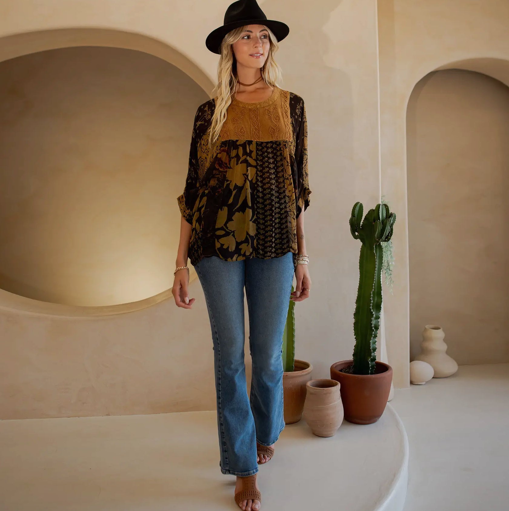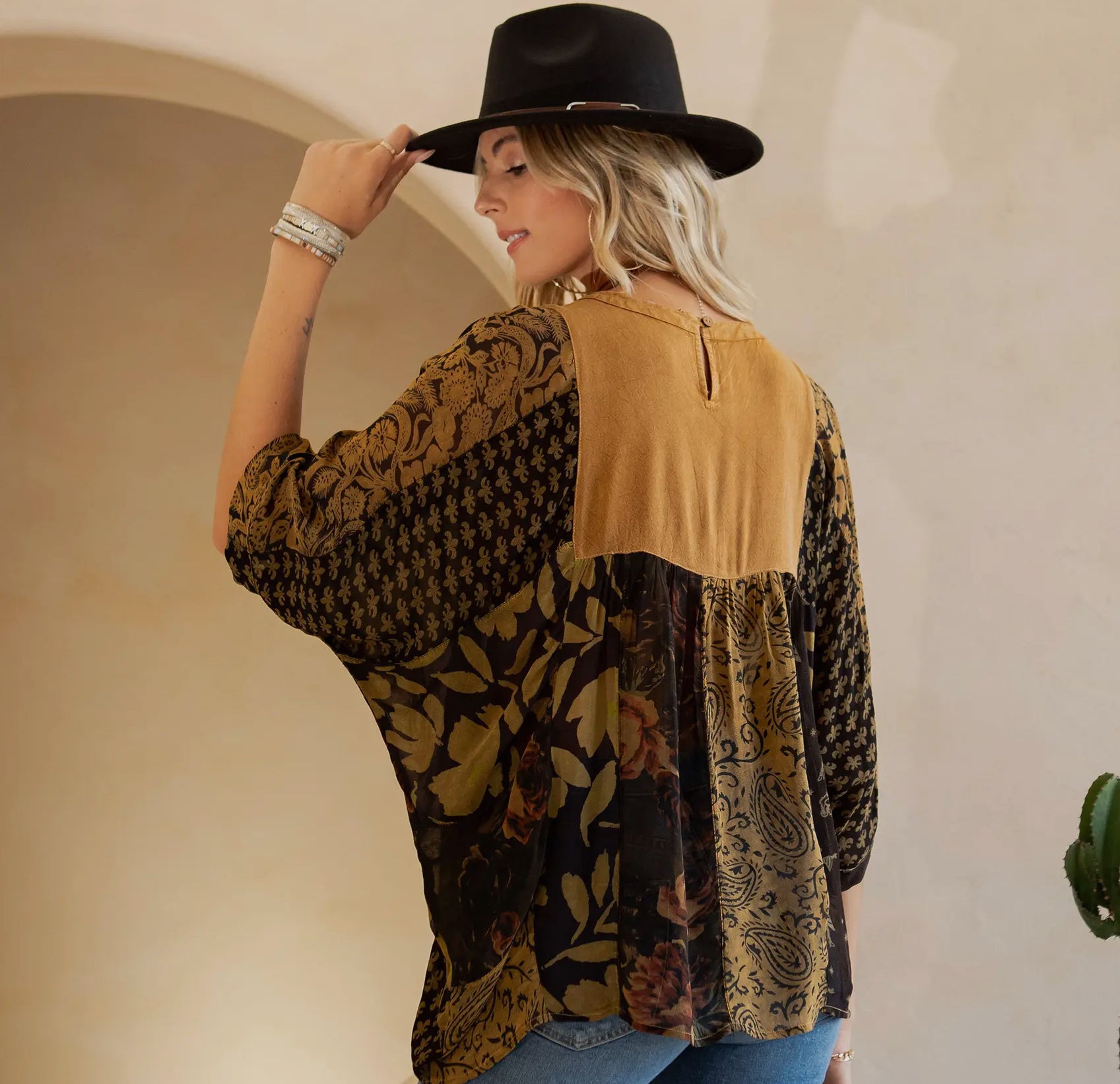 Bohemian: Tiered Patchwork Blouson Top TP23378RG