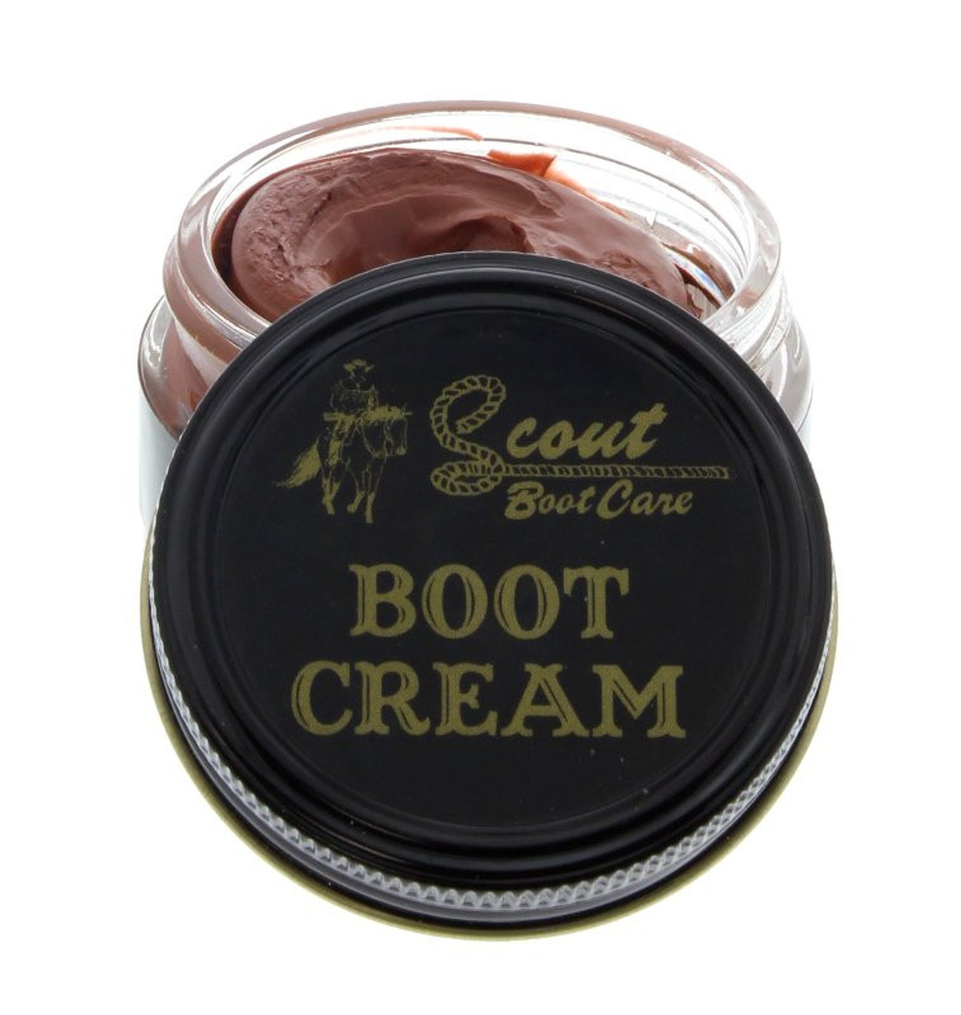 Scout Boot Cream by M&F Western Products is a favorite for boots, fine saddlery, shoes and other smooth leather materials. It revitalizes the color of the leather and hides the scuffs and scratches from every day wear. You'll keep your leather boots and shoes looking their best with a quick polish now and then.