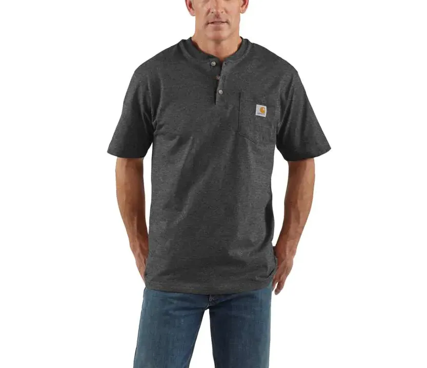 However you ended up here, we're glad you did. Order your Carhartt Men's K84 026 Carbon Heather Short Sleeve Henley Work Shirt from Working Person's Store today! The cotton-poly blended short sleeve is ready to get to work.
