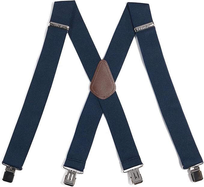 These Carhartt Men's Utility Suspenders feature heavy-duty metal clips for a firm, secure hold. These suspenders are made with 83.3% polyester/16.67% rubber. They feature the Carhartt logo debossed on a top-grain leather back patch.