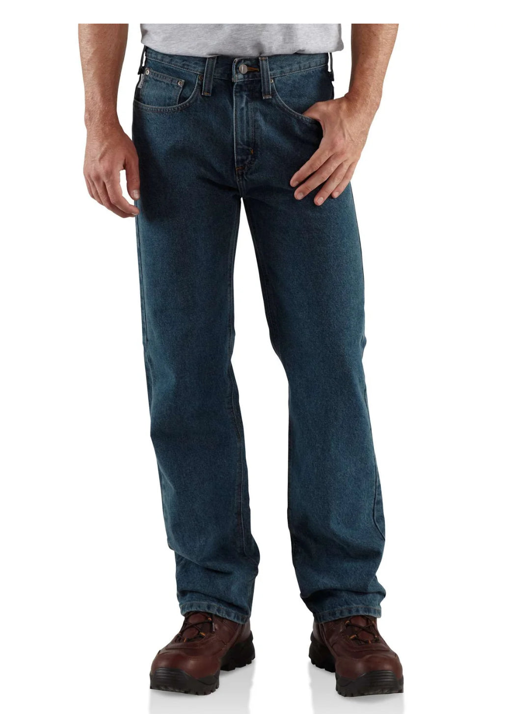Cut for comfort on the job, these men's jeans have extra room in the seat and thigh so you can maneuver under that sink or into that crawl space. They're made of heavyweight denim for long-lasting durability.