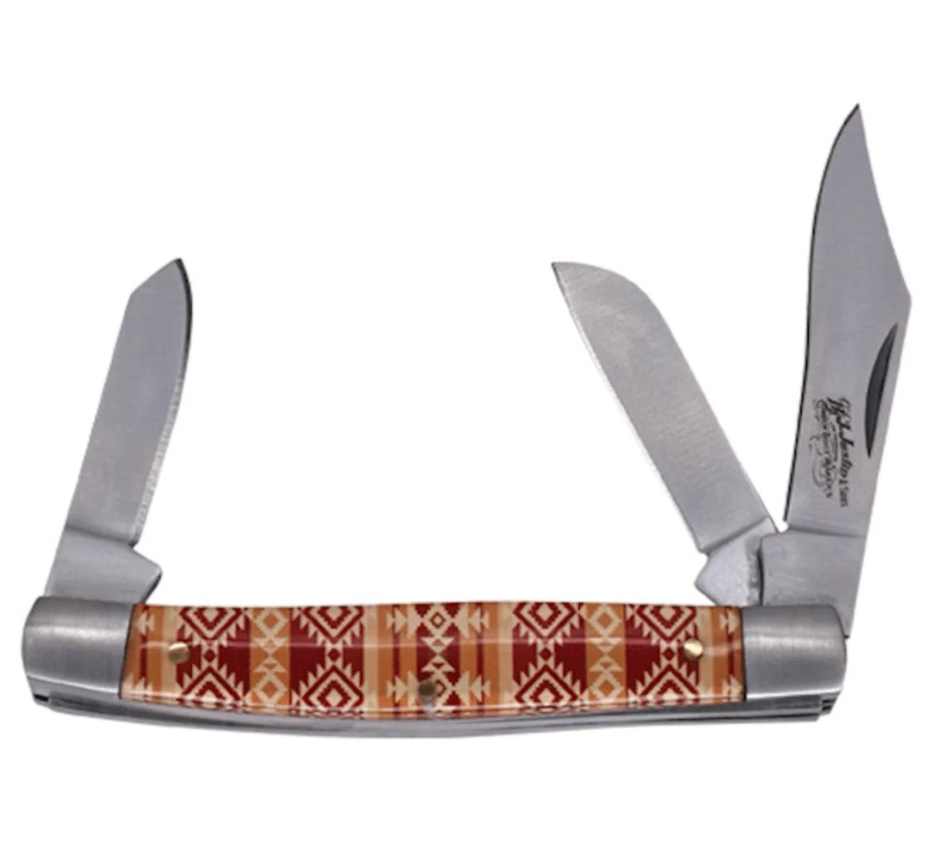 Justin Stockman Acrylic Tan & Red Aztec 3 Blade Pocket Knife