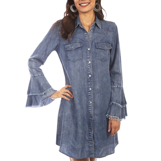 Scully Denim Shirt/Dress with ruffle sleeves