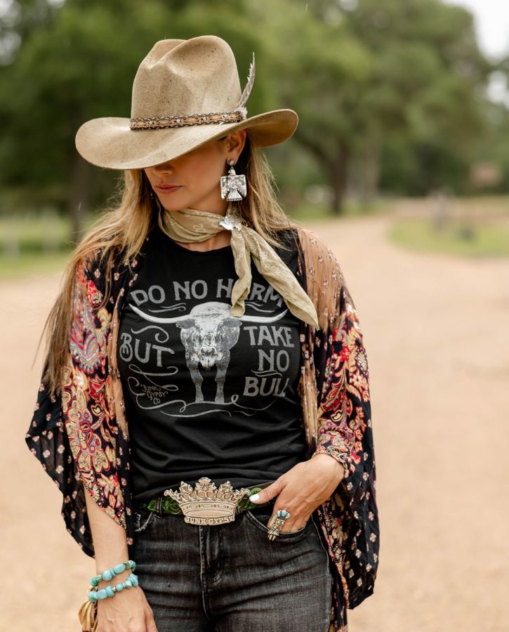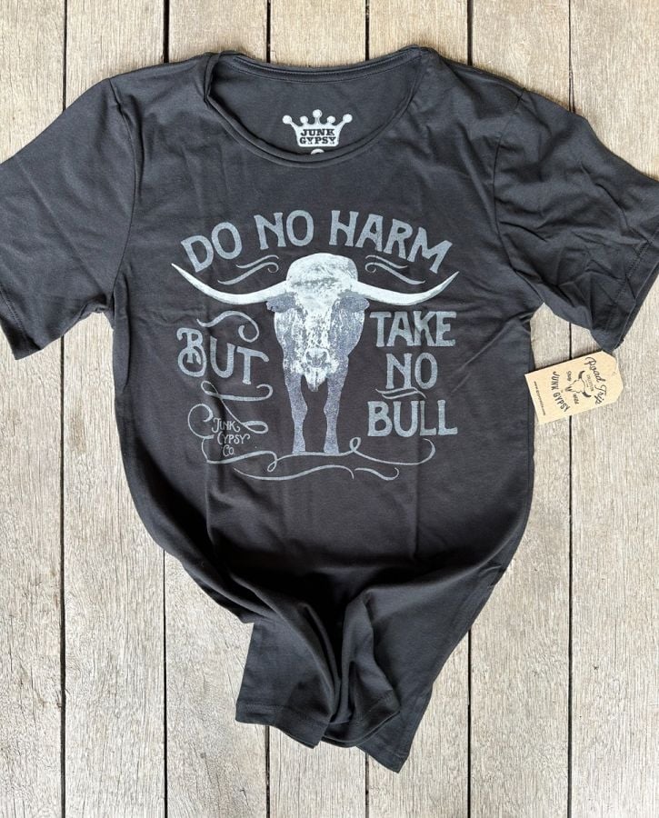 Black colored T-shirt with saying Do No Harm But Take No Bull