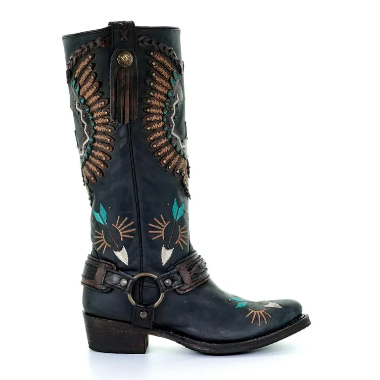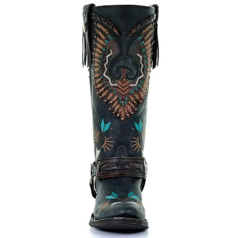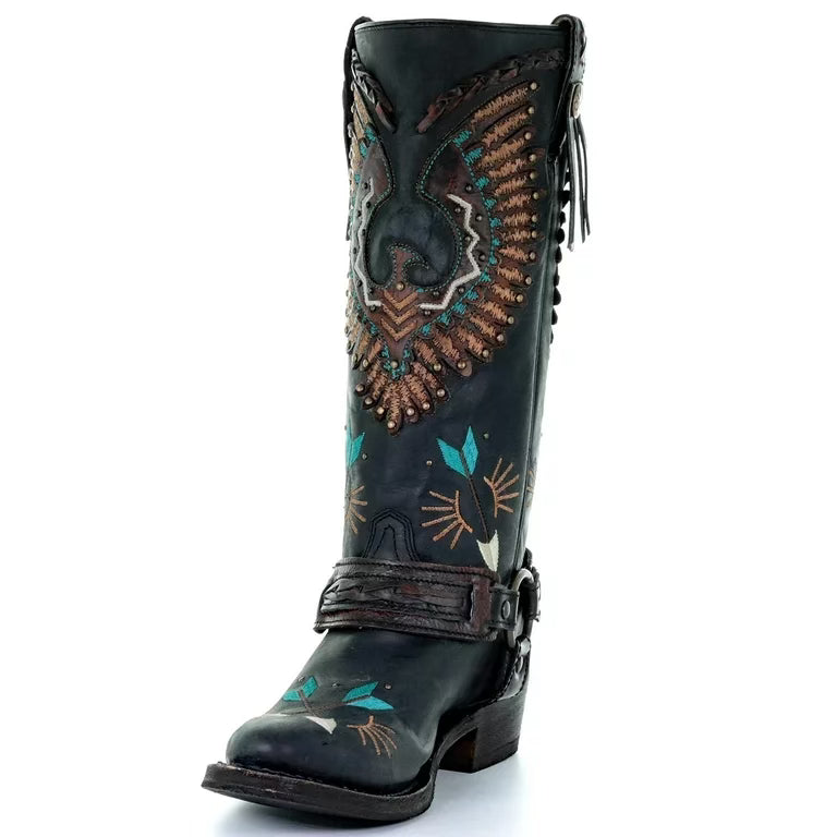 Corral boots are handcrafted ensuring a western boot that is unique in design and incomparable in quality. These stunning ankle boots feature genuine leather construction with distressing for that worn in look. Decorative side fringe and stud and concho details add beautiful style. Pair it with ankle jeans or a cute western dress for a fun night out.