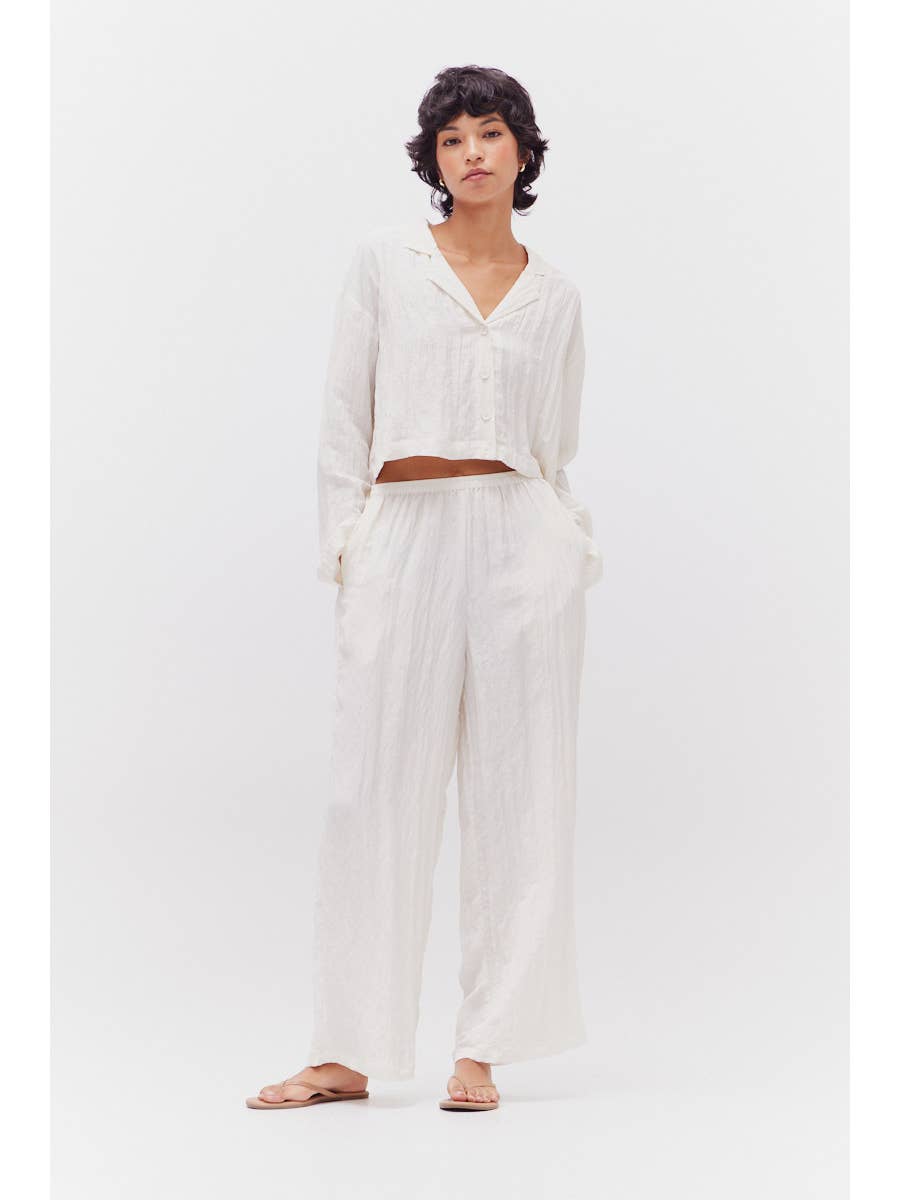 CRINKLE FABRIC SUMMER PANTS White 100% POLYESTER IMPORTED