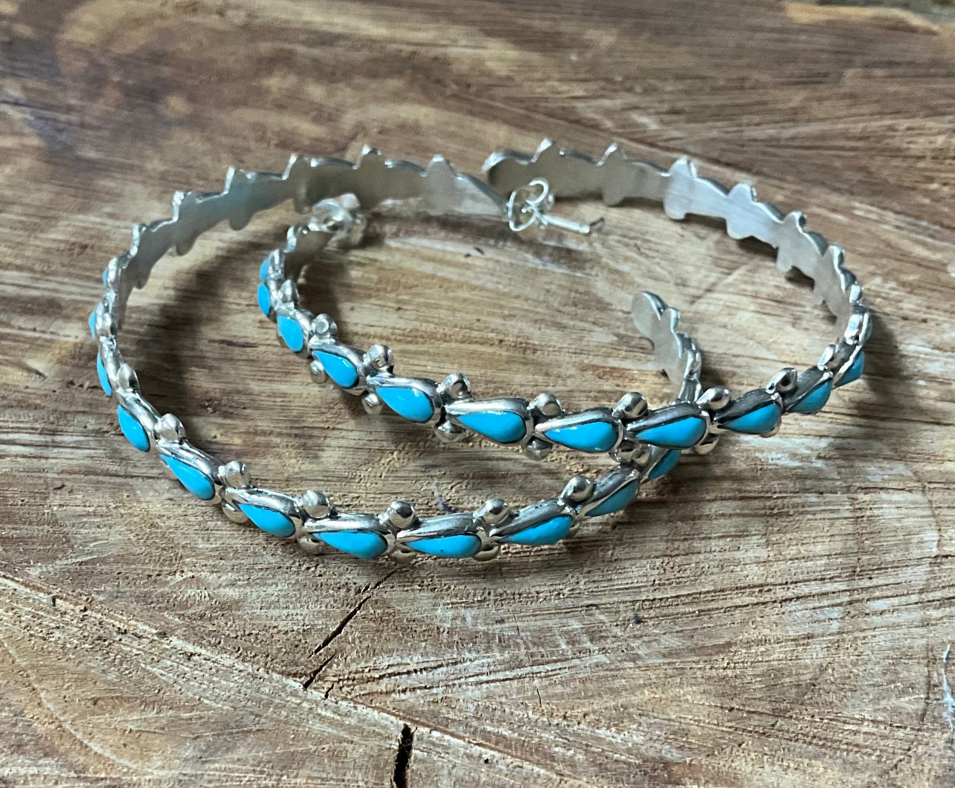 Kingman Turquoise hoops with sweet teardrop cabs & sterling silver drops for sparkle