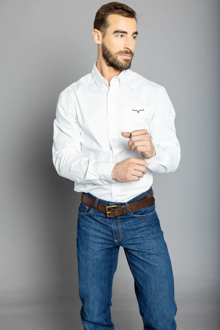 Details: Long Sleeve, Piece Dyed, Solid Cooling Fabric, Single Pocket Featuring Contrasting Embroidered Horns Logo, Button Front, Long Body and Sleeves.