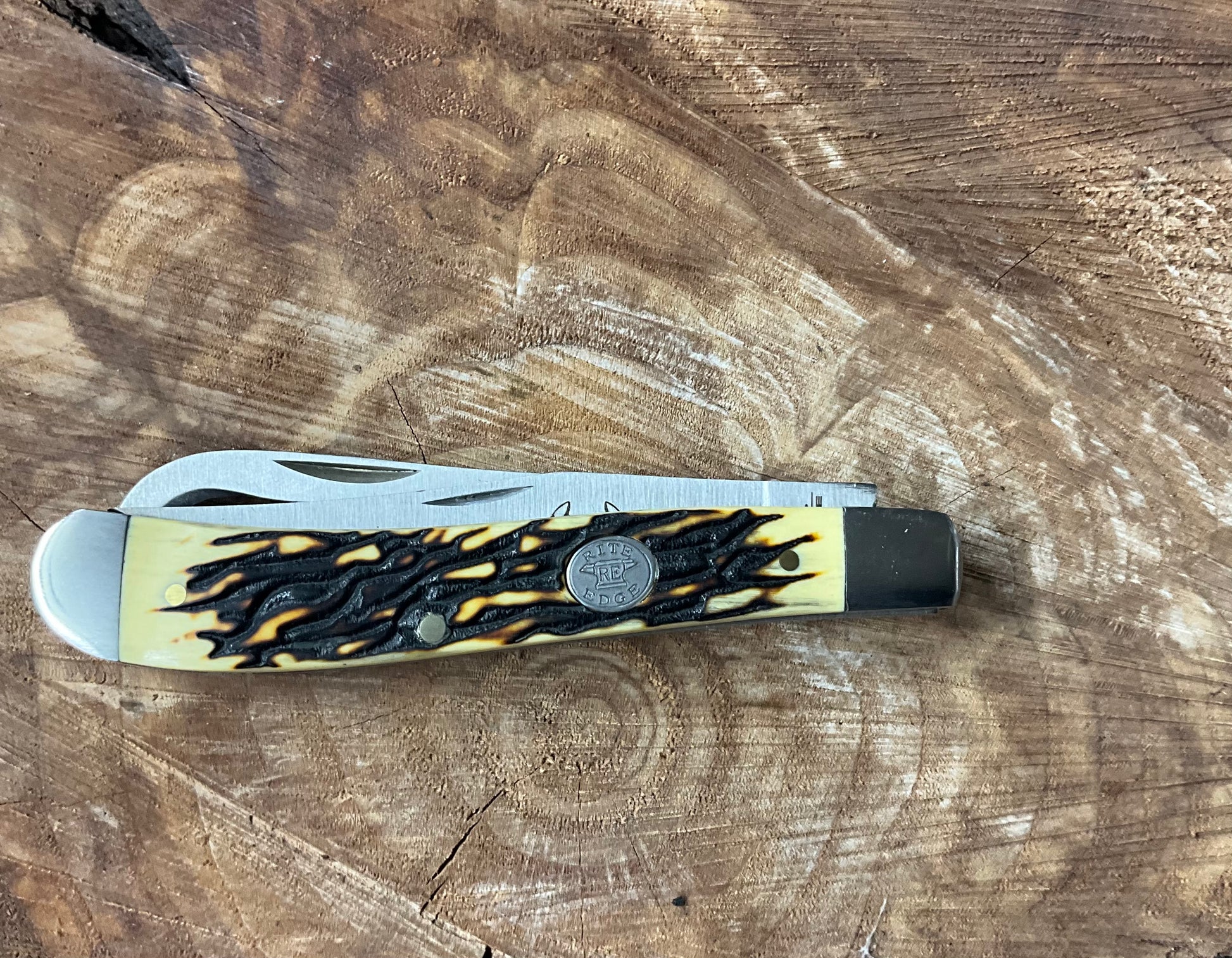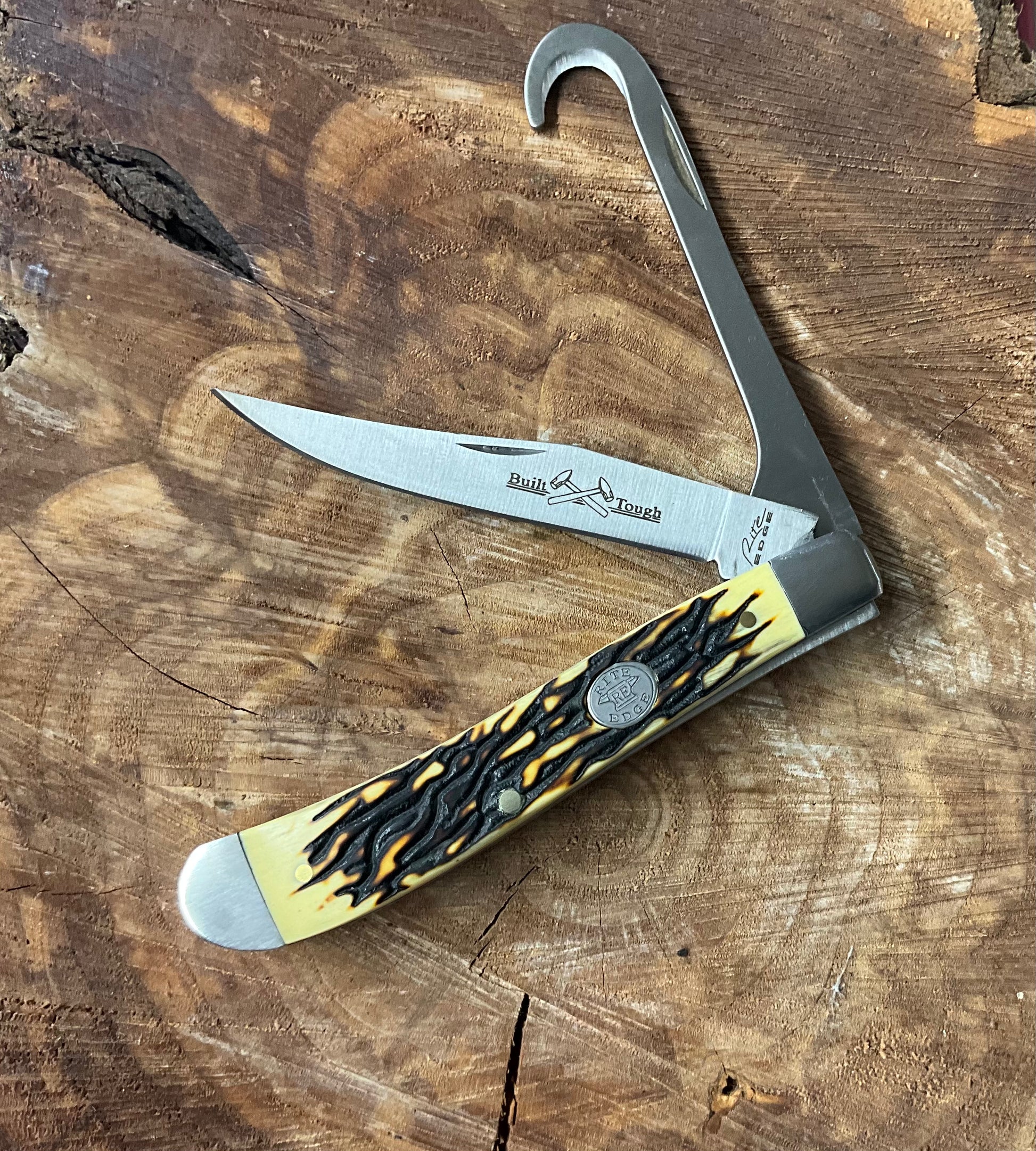 SZCO SUPPLIES 3.75" Dual Blade Hoof Knife – Stainless Steel Hook and Clip-Point Blades, Durable Bone-Style Handle, Multi-Use Folding Utility Knife for Ranch, Barn, Camping, and Outdoor Knife