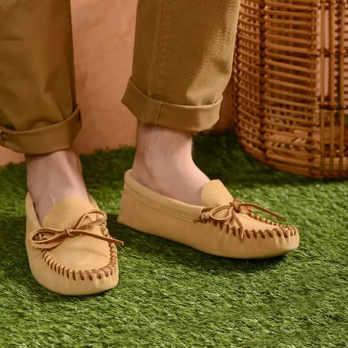 Step into a soft, almost barefoot feel in these timeless moccasins. Made by hand from soft and supple suede, these men’s moccasins melt onto your feet. Distinctive softsole bottoms help you walk softly, while the rawhide lace keeps these mocs in place. Stand out in our distinctive footwear originally released in 1951.