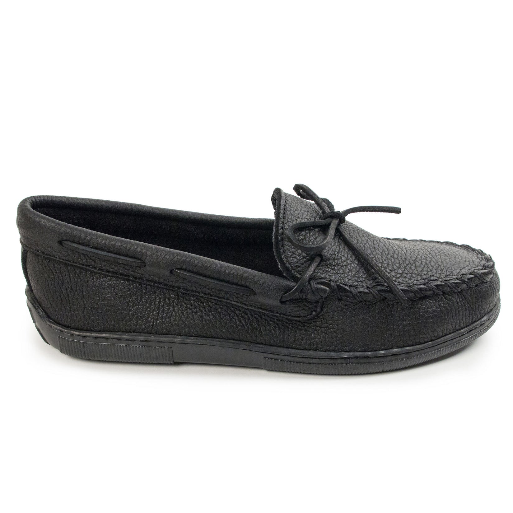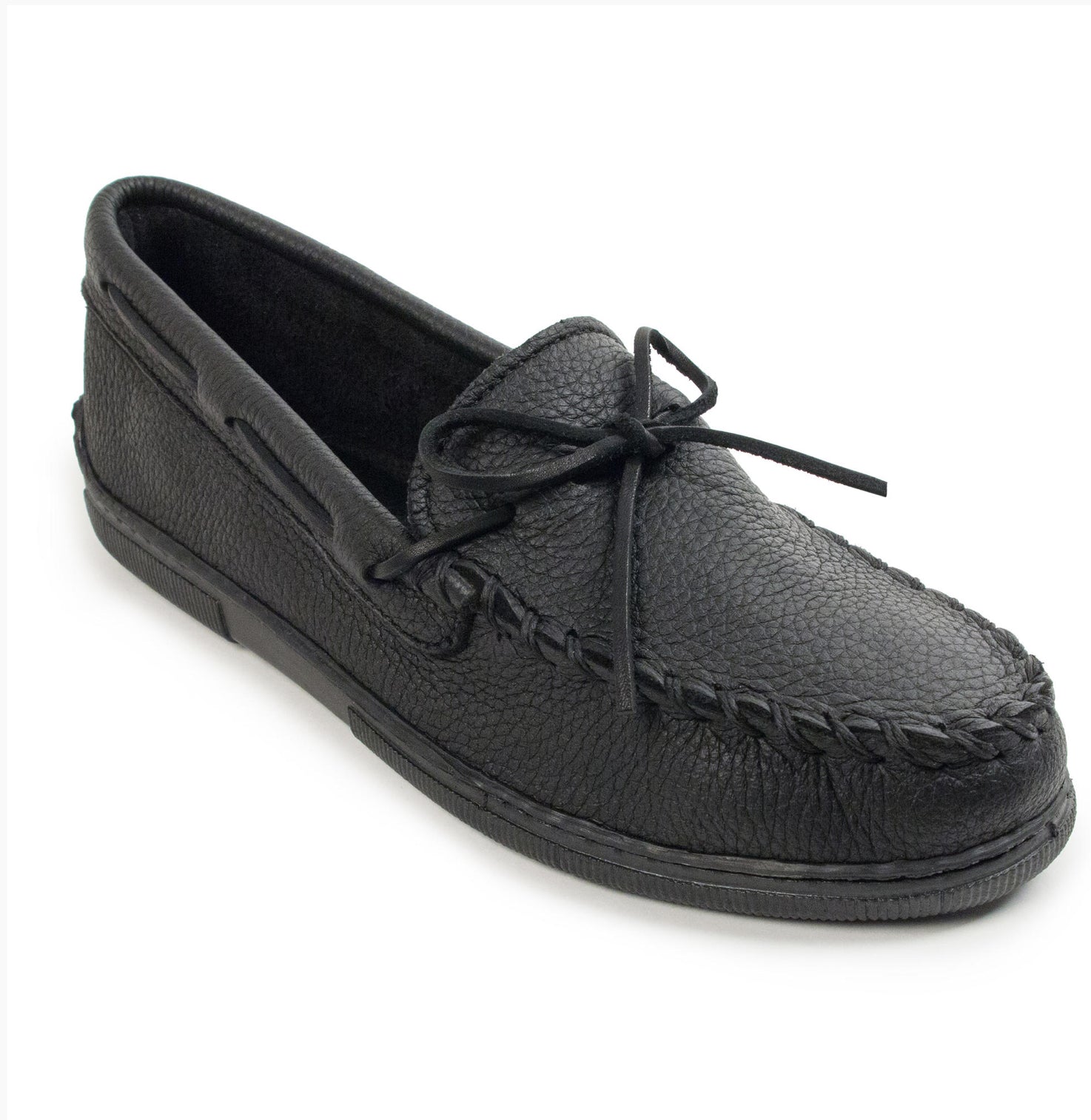Combine the stylish, timeless design of a loafer with the durable construction of thick and genuine moosehide and you get these incredible moccasins. Soft and supple moosehide provides a super comfortable feel. A lightweight rubber sole gives these men’s moccasins just enough flex. Perfect with khakis for the office or shorts or jeans for a more casual look, these versatile moccasins will be a go-to favorite for a long time to come.