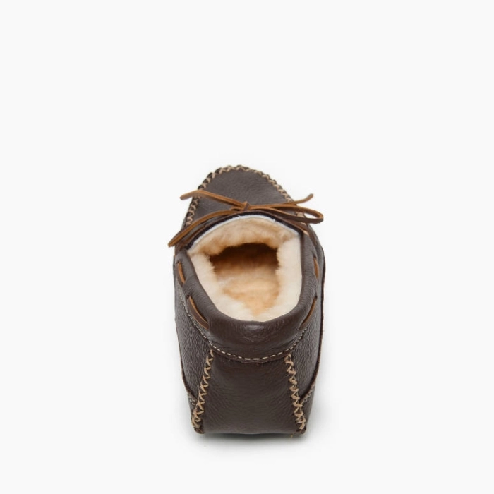 Featuring a soft, genuine moosehide upper lined with genuine sheepskin this men's moccasin slipper provides the ultimate in comfort and warmth for any cold day that winter throws your way.