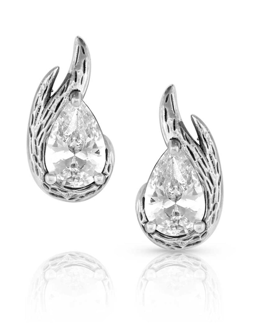 A twist on the classic teardrop earrings, these glittering cubic zirconia stones are held in place by delicate textured silver antlers. Pause just for a moment as you put these on. Think of breathing in the cool morning air, listening to the bird songs and feel as if time is frozen, if only just for a moment. This beautiful piece from Kristy Titus is not just an accessory, it is a reminder of a moment in time. These cubic zirconia and sterling silver earrings have stainless steel post backs.