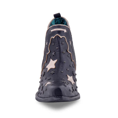 These unique boots have an amazing blend of design elements. From the supple leather to the stitched accents, you will be the shining star anytime you wear these amazing boots. They feature our split-side design, back pull loops and tapered heels.