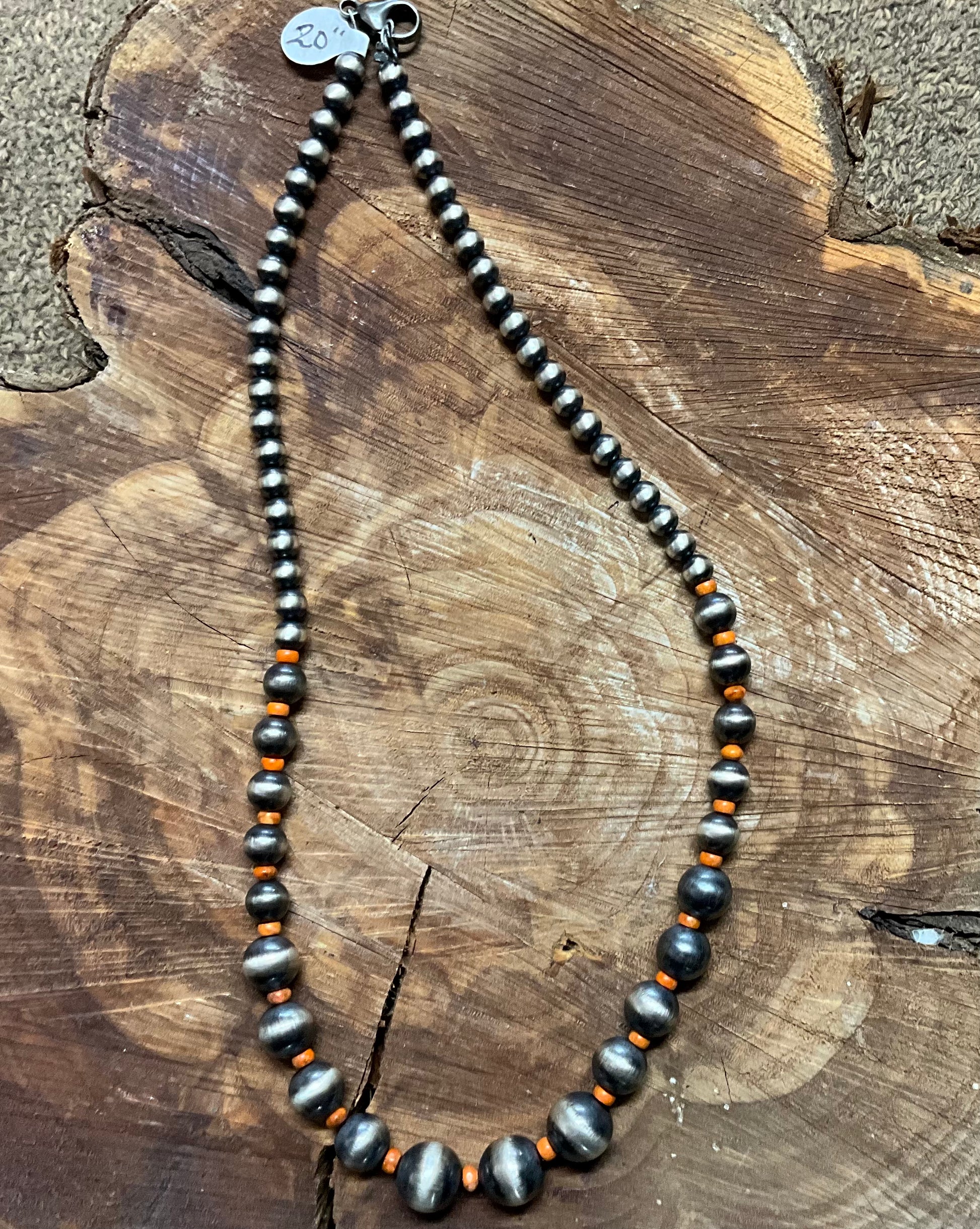 Hand strung OxyBead© necklace with bright orange Spiny Oyster Shell beads.