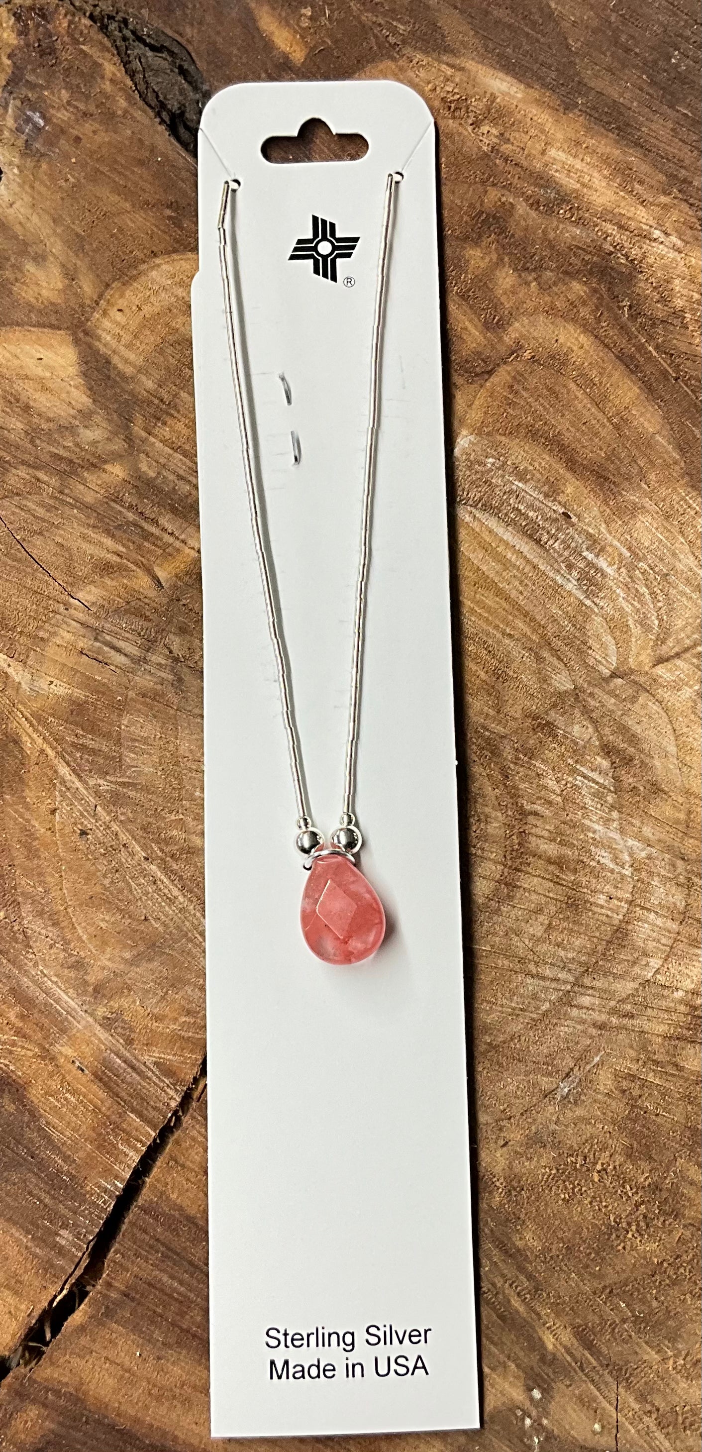 Genuine Indian Handmade Sterling Silver Necklace Rose Stone