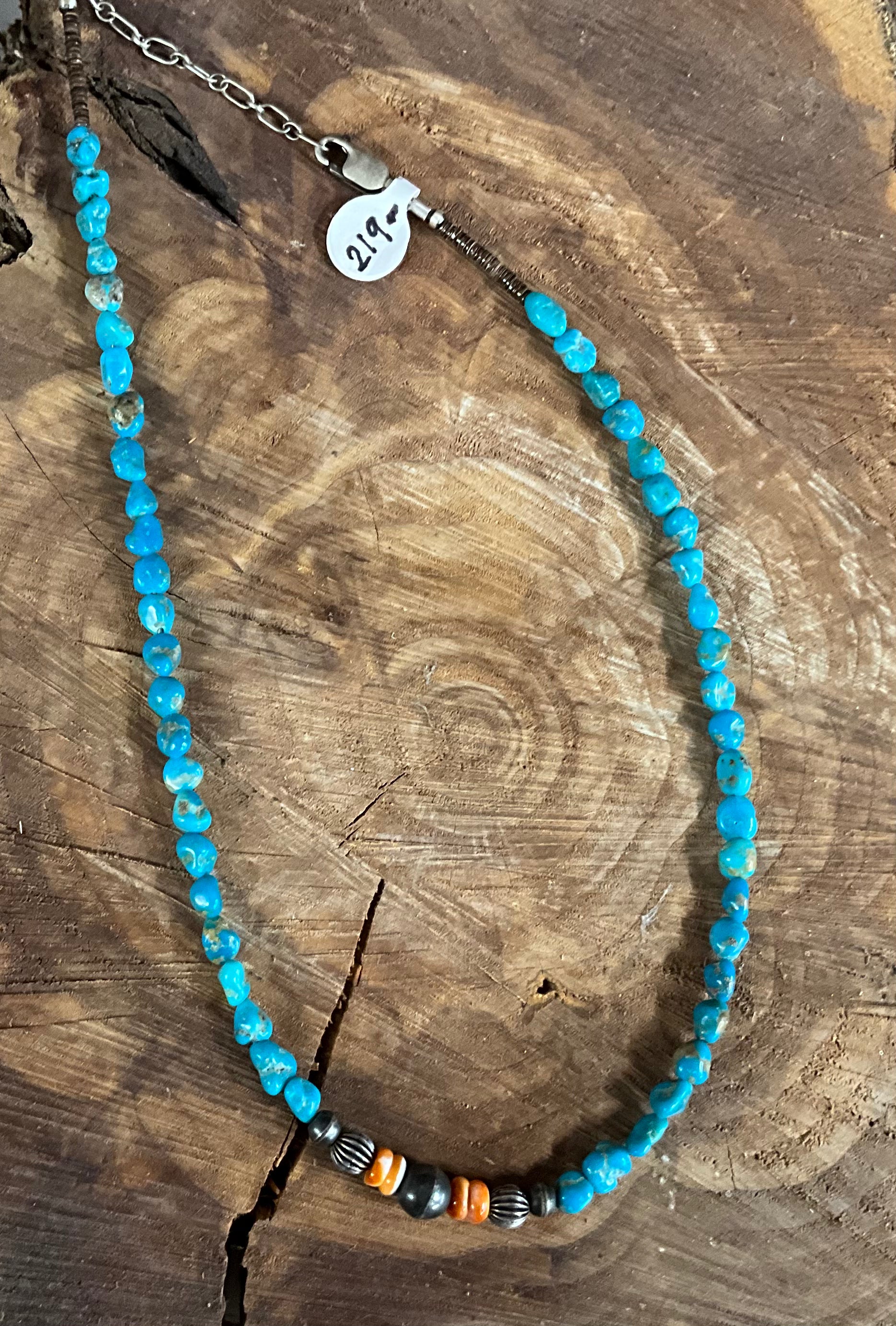 Genuine Indian Handmade Necklace Turquoise Beads 16”