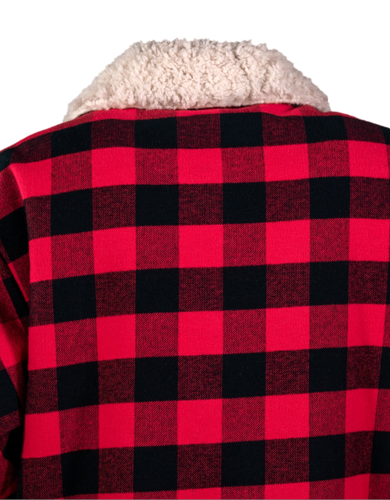 Live the rancher dream in our Lucinda Jacket. This classic ranch jacket features a buffalo red check shell with knot buttons and a Berber collar and lining. Features include a concealment pocket, inside security pocket, hip, and chest pockets, plus, it’s machine washable.