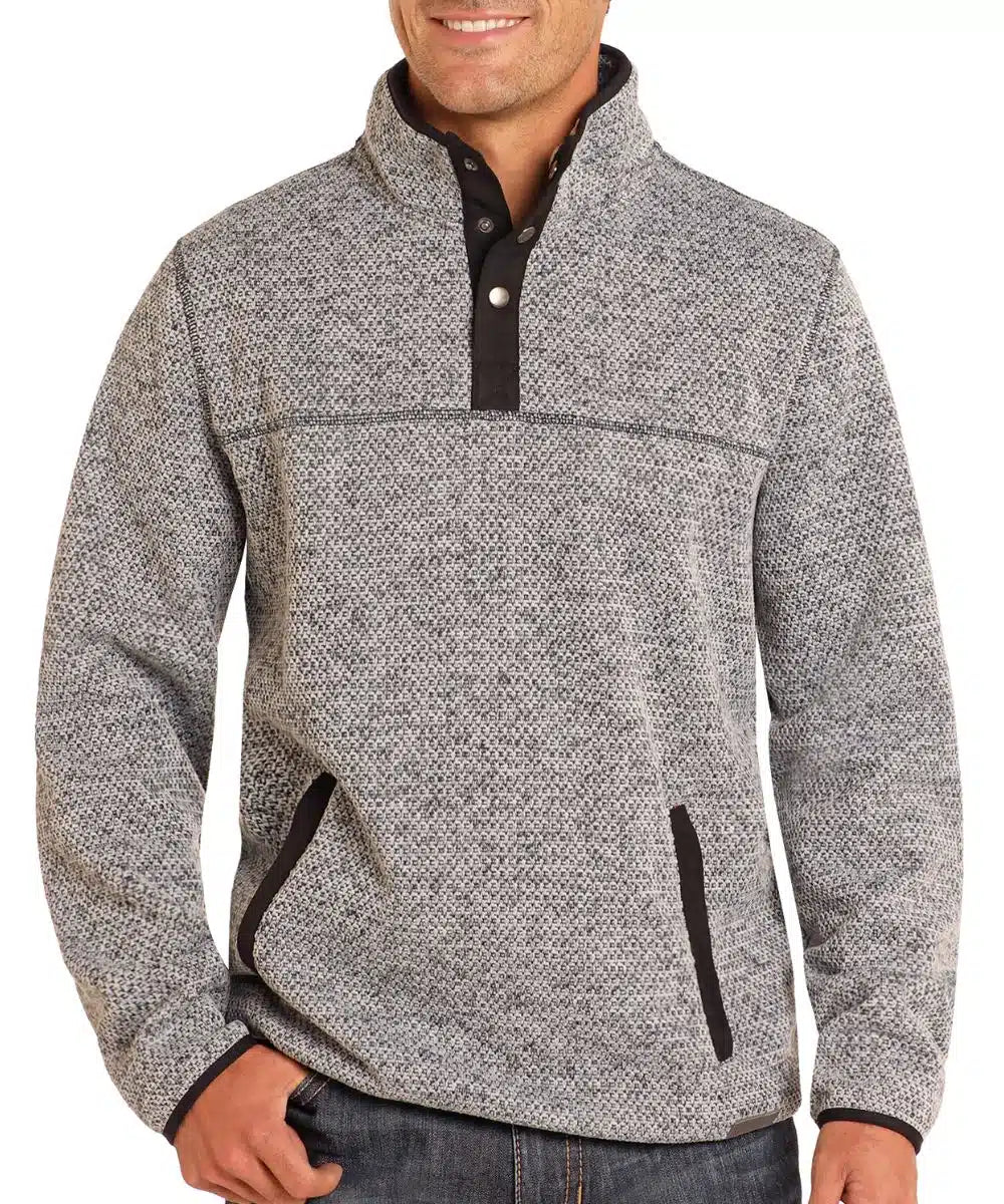 100% Polyester; Long Sleeves; Mock Collar; 1/4 Snap Closure/3-Snap Placket; Zippered Hand Pockets; Melange Pullover With Microsuede Trim; Color; Grey; Style #DM91C04076