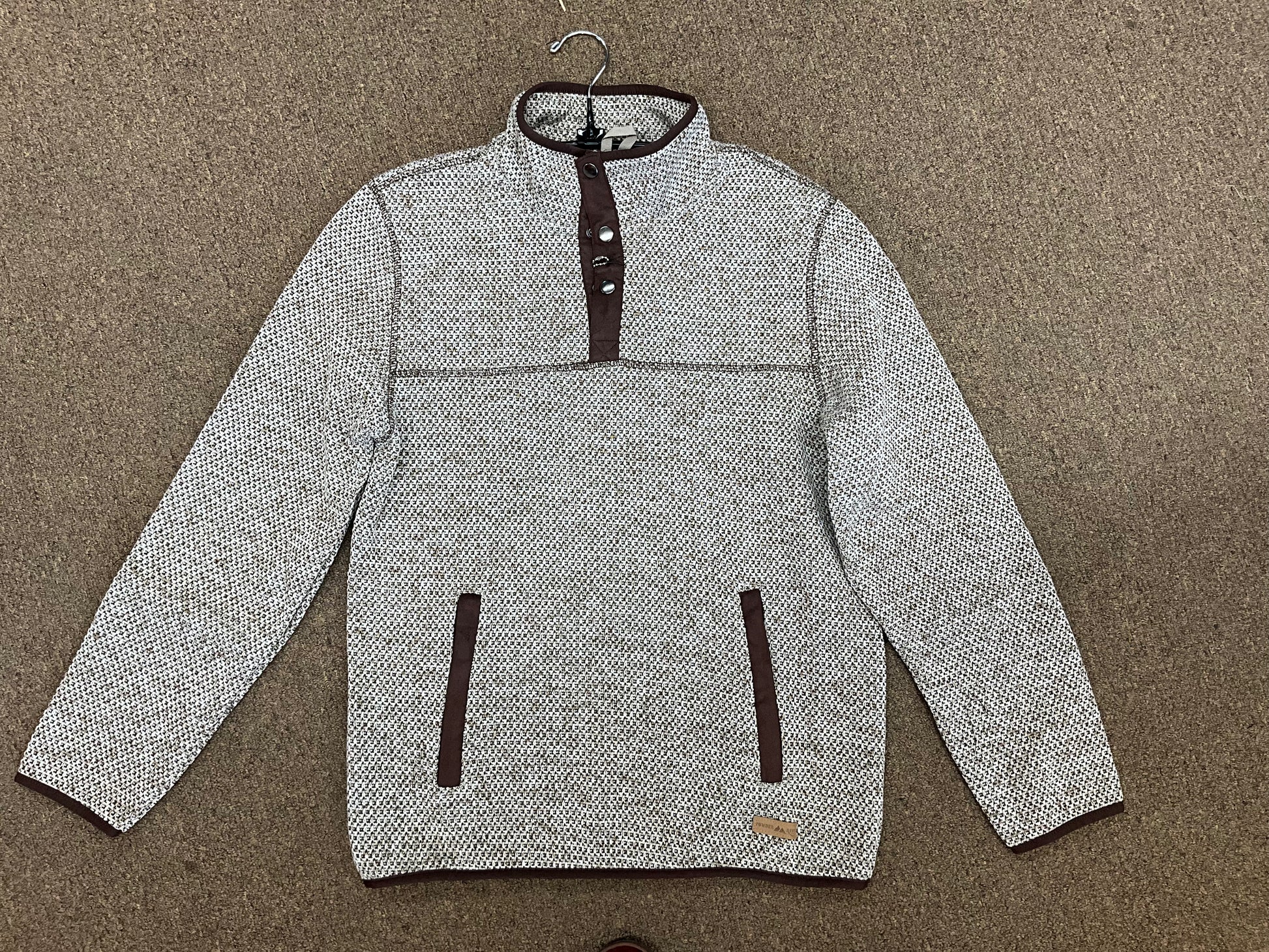 BROWN & TAN 100% Polyester; Long Sleeves; Mock Collar; 1/4 Snap Closure/3-Snap Placket; Zippered Hand Pockets; Melange Pullover With Microsuede Trim; Color; Grey; Style #DM91C04076