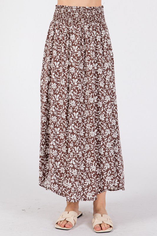 PRINT SMOCKED WAIST SLITTED MIDI SKIRT NS80176