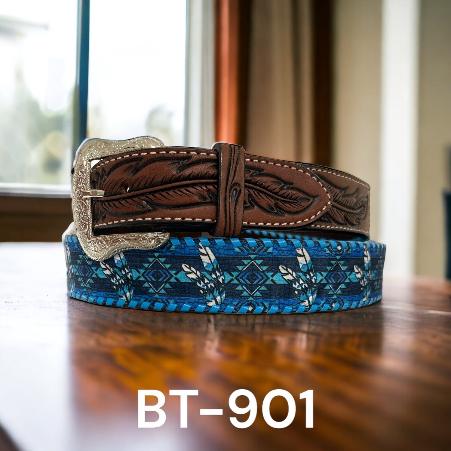 Ranger Belt Company presents this blue feather leather belt with a removable silver buckle.