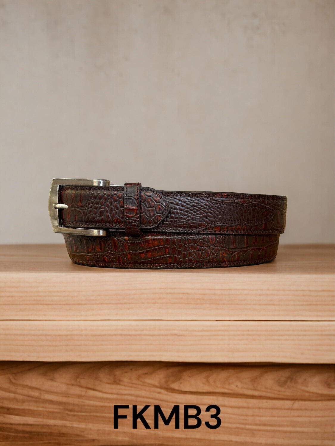 Ranger Belt Company presents this croc embossed leather belt with a removable silver buckle.