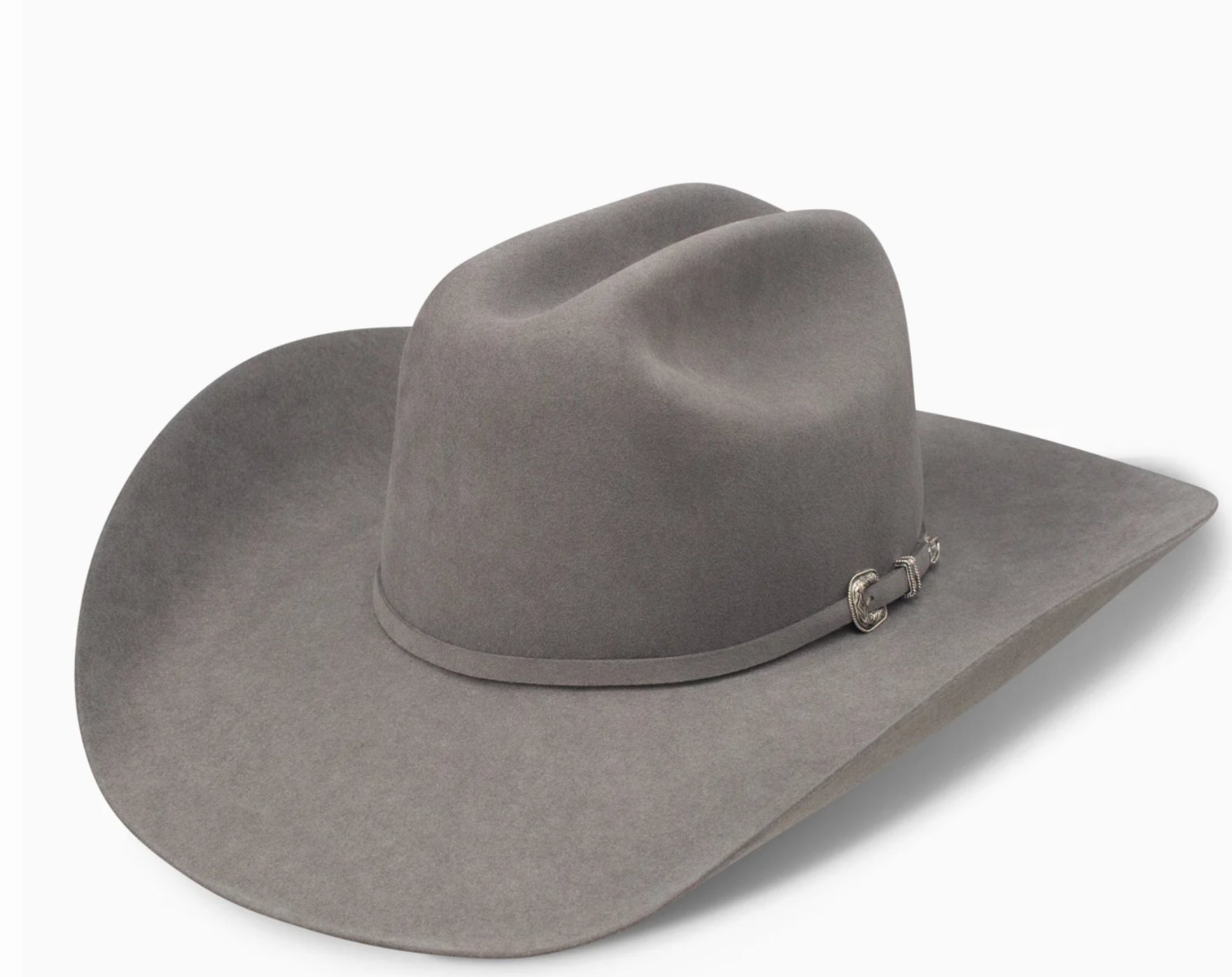 Named for Texas founder and hero Edward H. Tarrant, the 20X Tarrant Cowboy Hat in Charcoal is a luxurious 20X felt hat with a 4 5/8” cattleman’s crown, a 4 1/4" brim, and a sheepskin sweatband. The elegant charcoal color, complemented by a silver buckle, evokes cowboy traditions that run from the Guadalupe Mountains to the Fort Worth Stockyards.