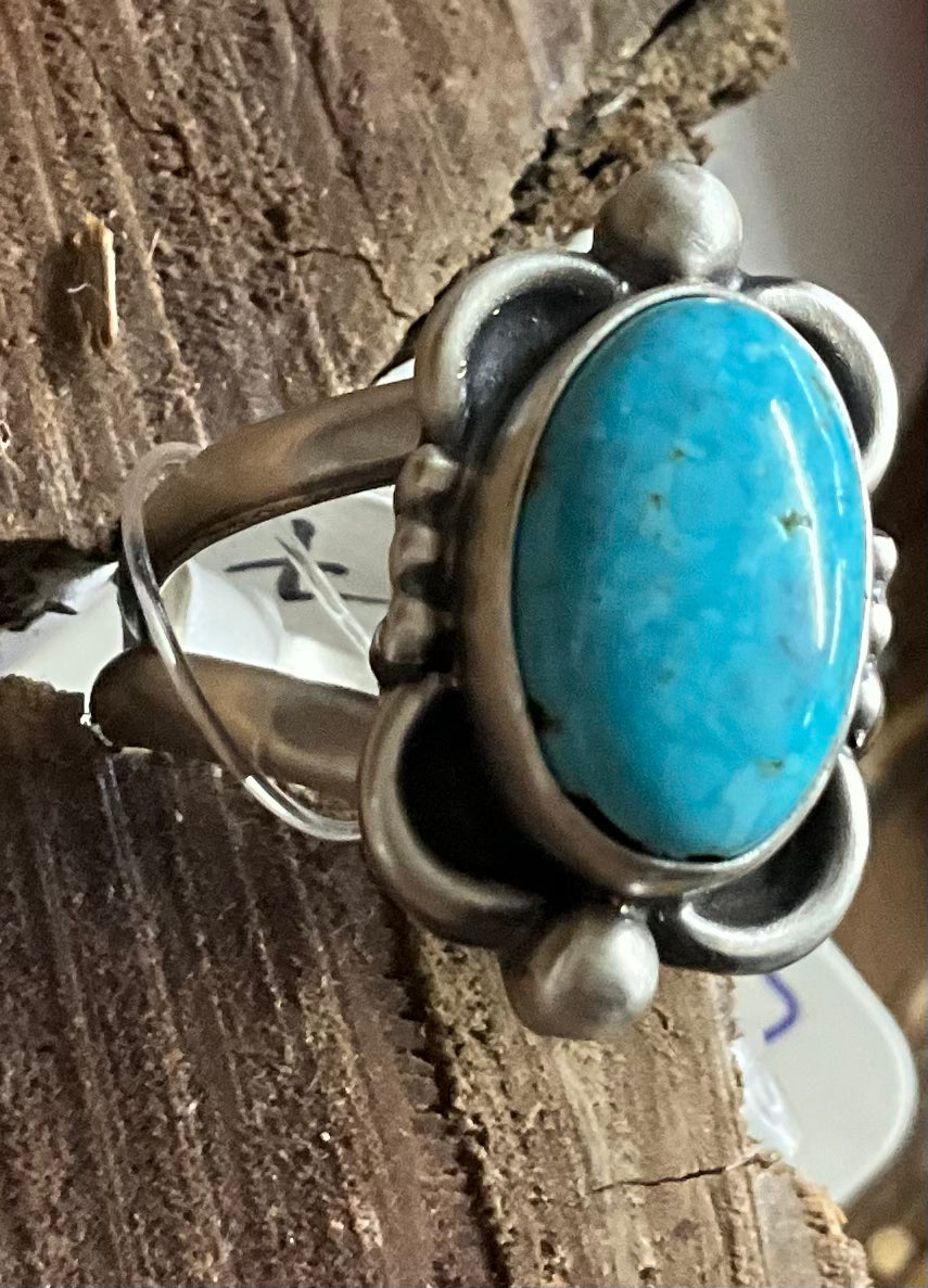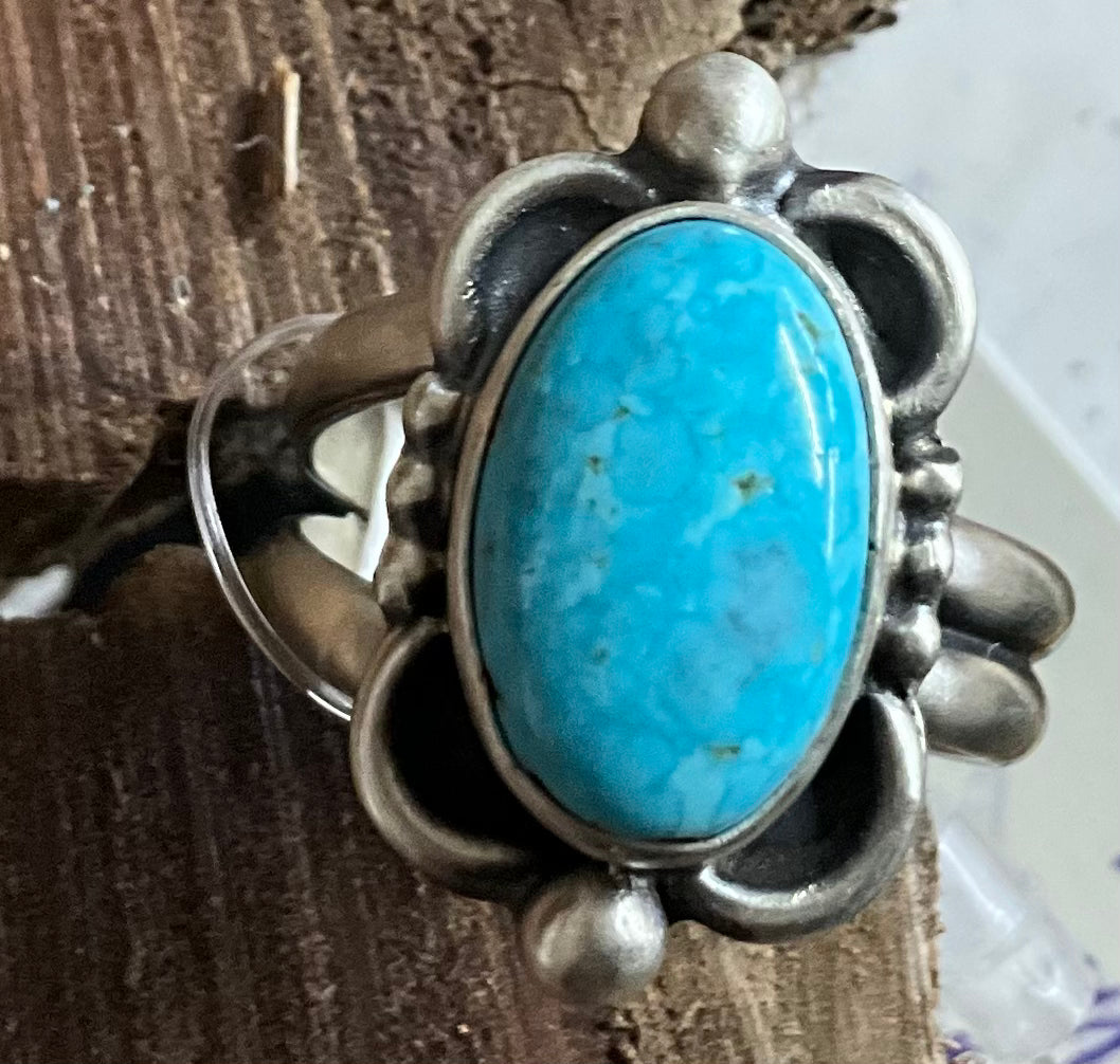 Genuine Indian Handmade Sterling Silver Turquoise Ring Size 7