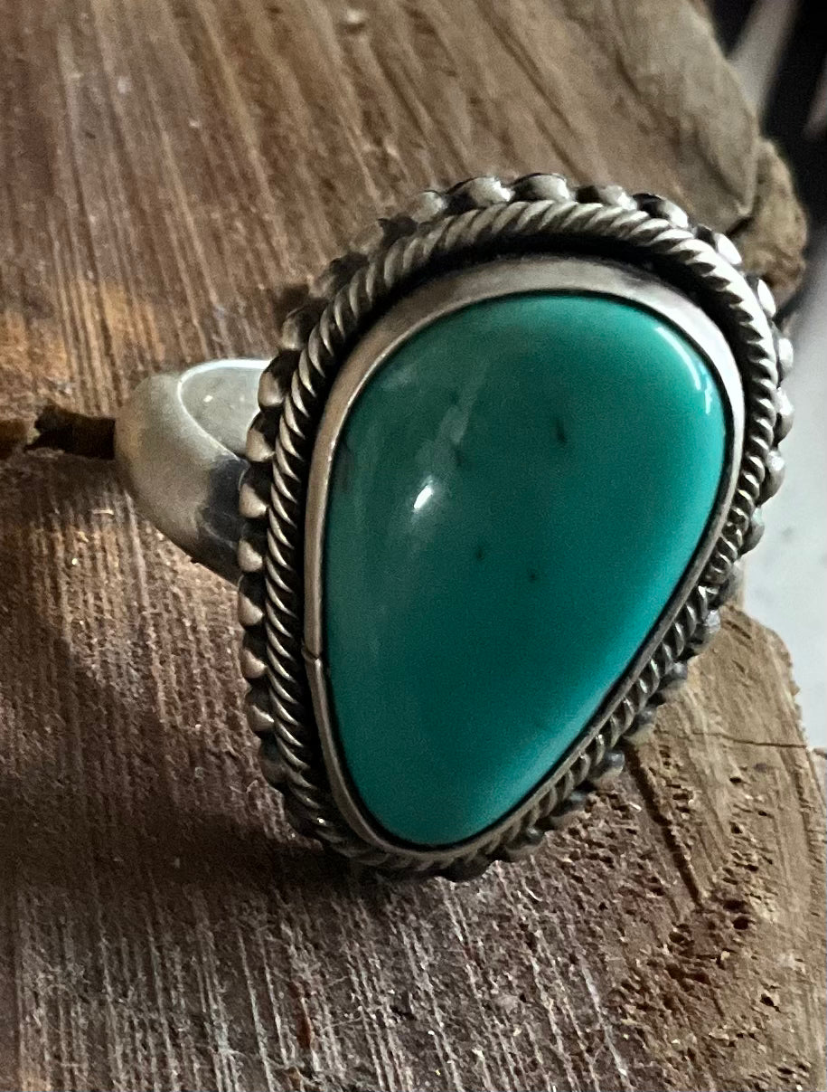 Genuine Indian Handmade Sterling Silver Turquoise Ring Size 6