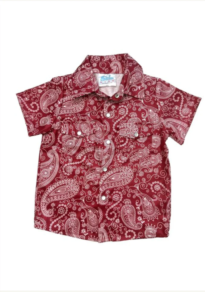 Designed for style and comfort, this Maroon Paisley SS Pearl Snap Shirt is a must have for any cowboy! Made from breathable, high quality fabric, it keeps them cool & comfortable while offering a classic western look!