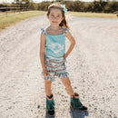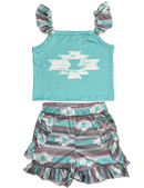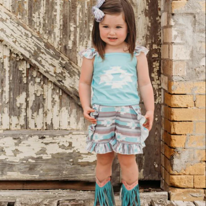 Keep your cowgirl cool and stylish with our Teal Aztec Horse Set! This adorable two piece outfit is made from soft but durable fabric thats perfect for warm weather adventures!