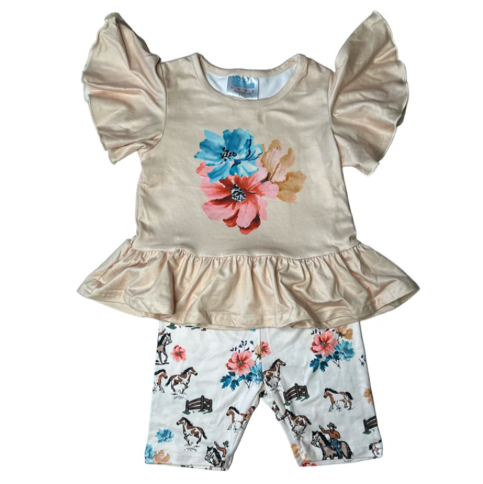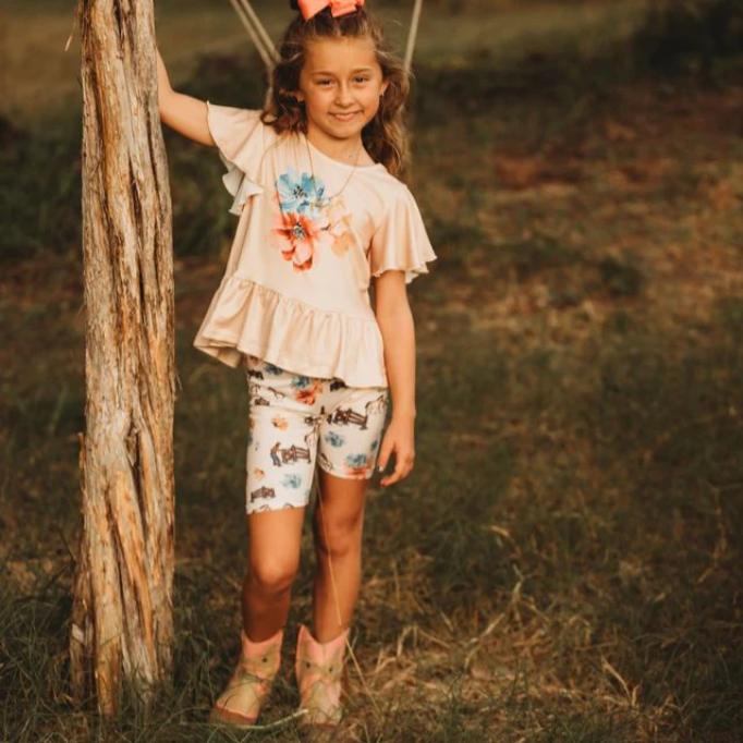 Keep your cowgirl cool and stylish with our Ranch Hand Set! This adorable two piece outfit is made from soft but durable fabric thats perfect for warm weather adventures!