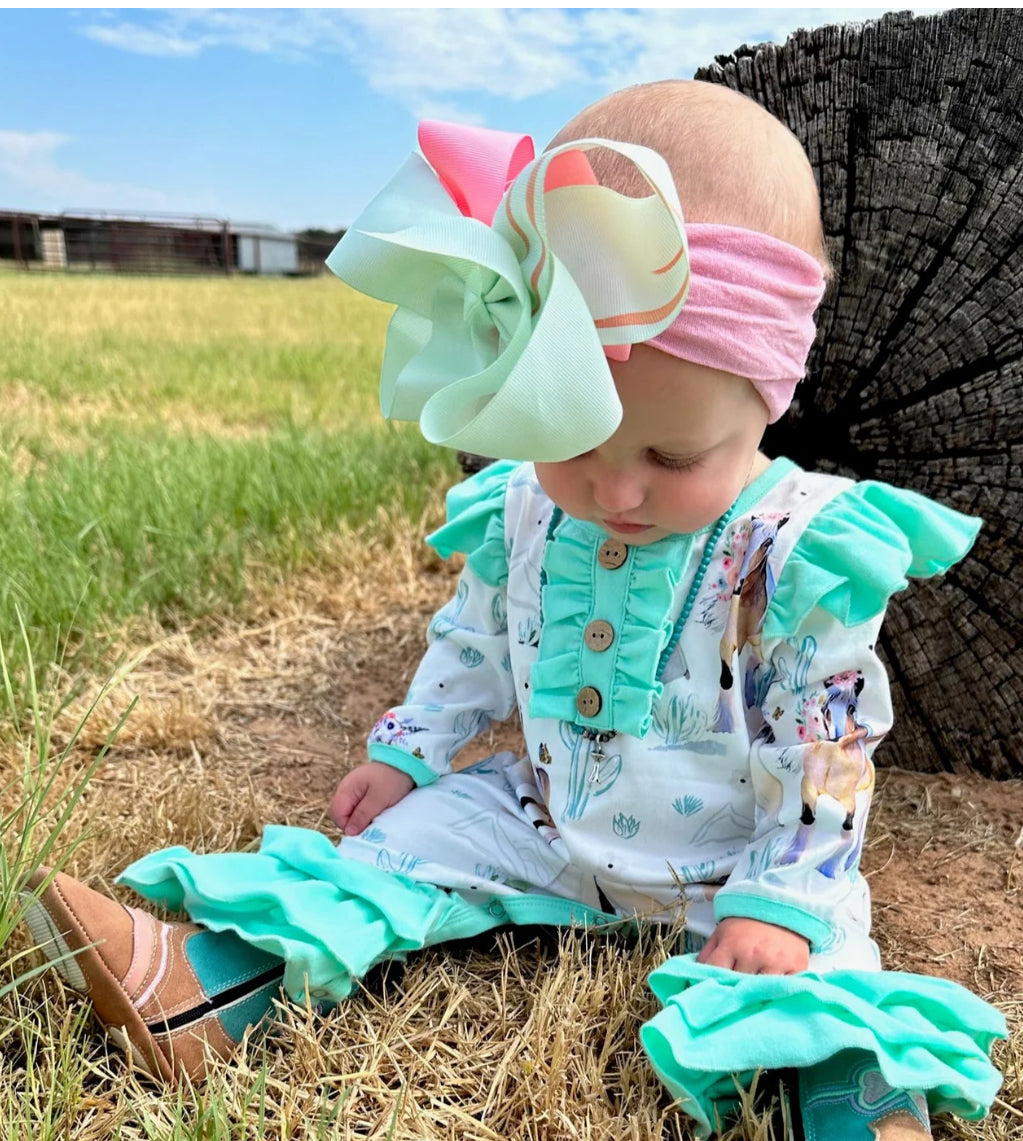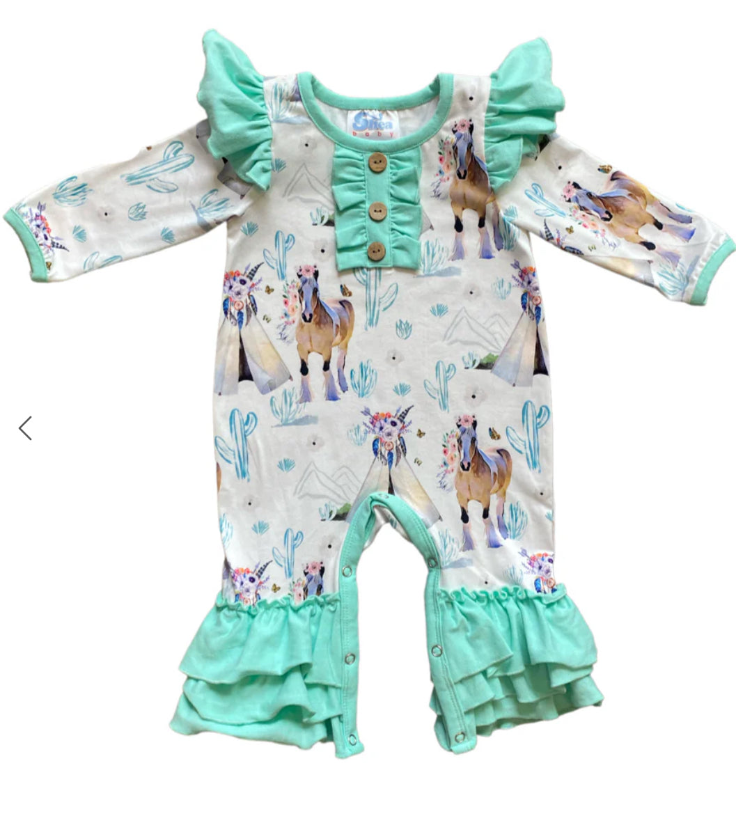 Every little girl wants to be stylish and comfortable. Shea Baby long sleeve ruffle rompers have the perfect prints and ruffles for the extra flare your little one is looking for. Our long sleeve ruffle rompers come with leg snaps for easy changing!