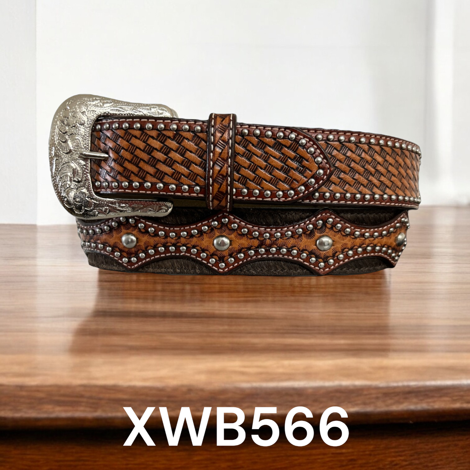 Twisted X presents this basket weave billet, nail heads and cowhide belt