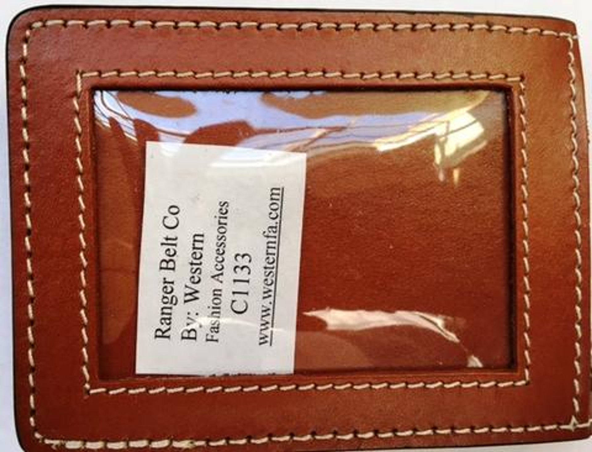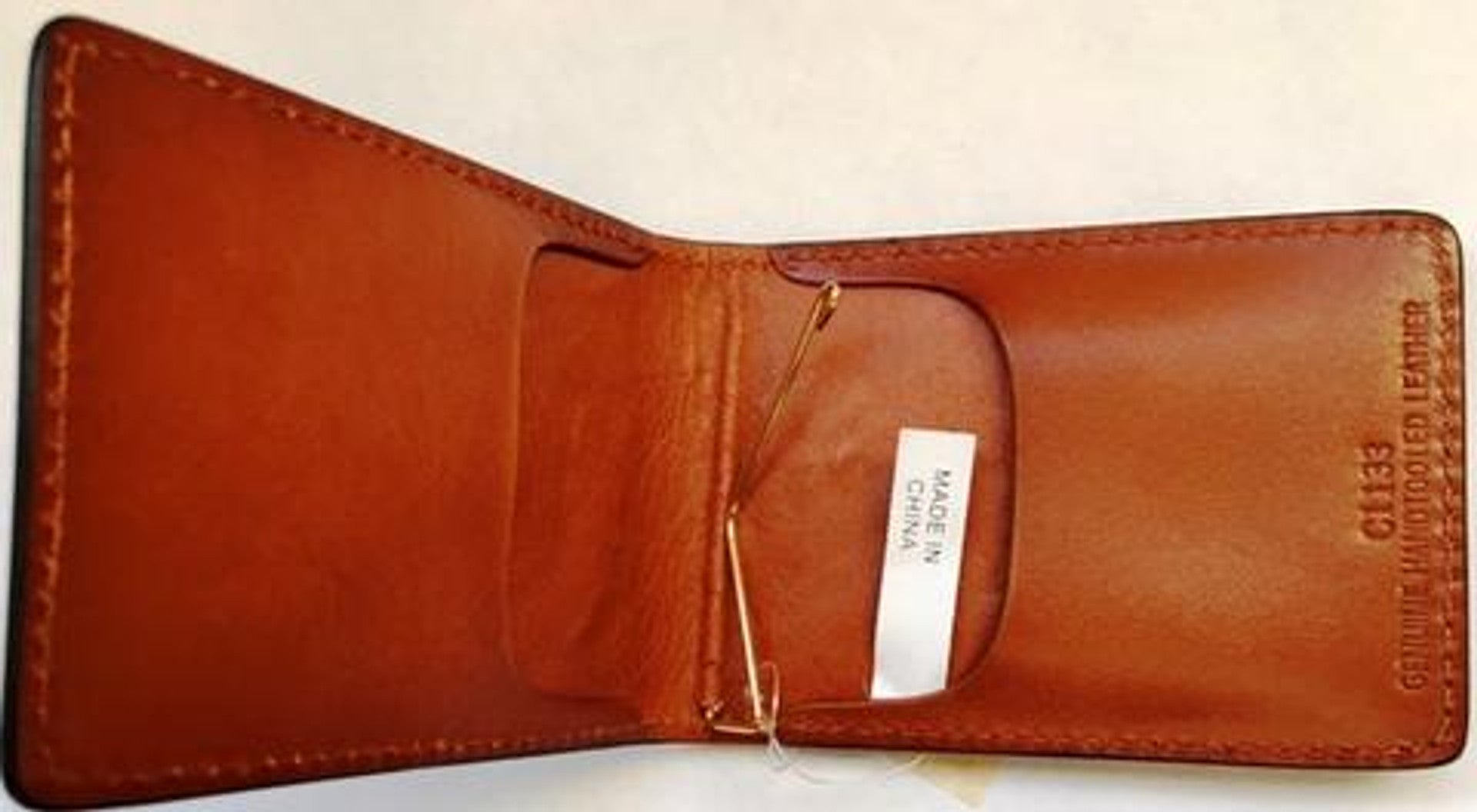 A great genuine tan basket weave money clip with triple hair inlaid crosses.