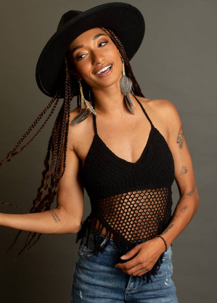 This crochet top will add a delicate, bohemian touch to any outfit.