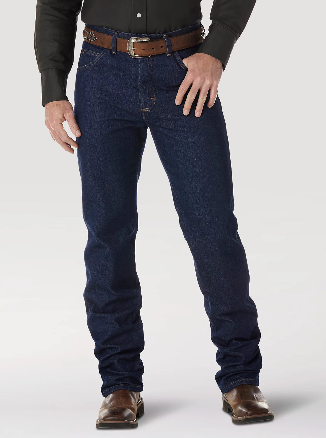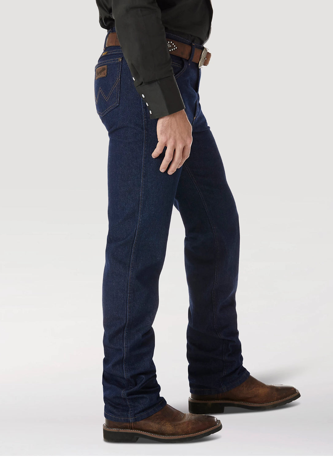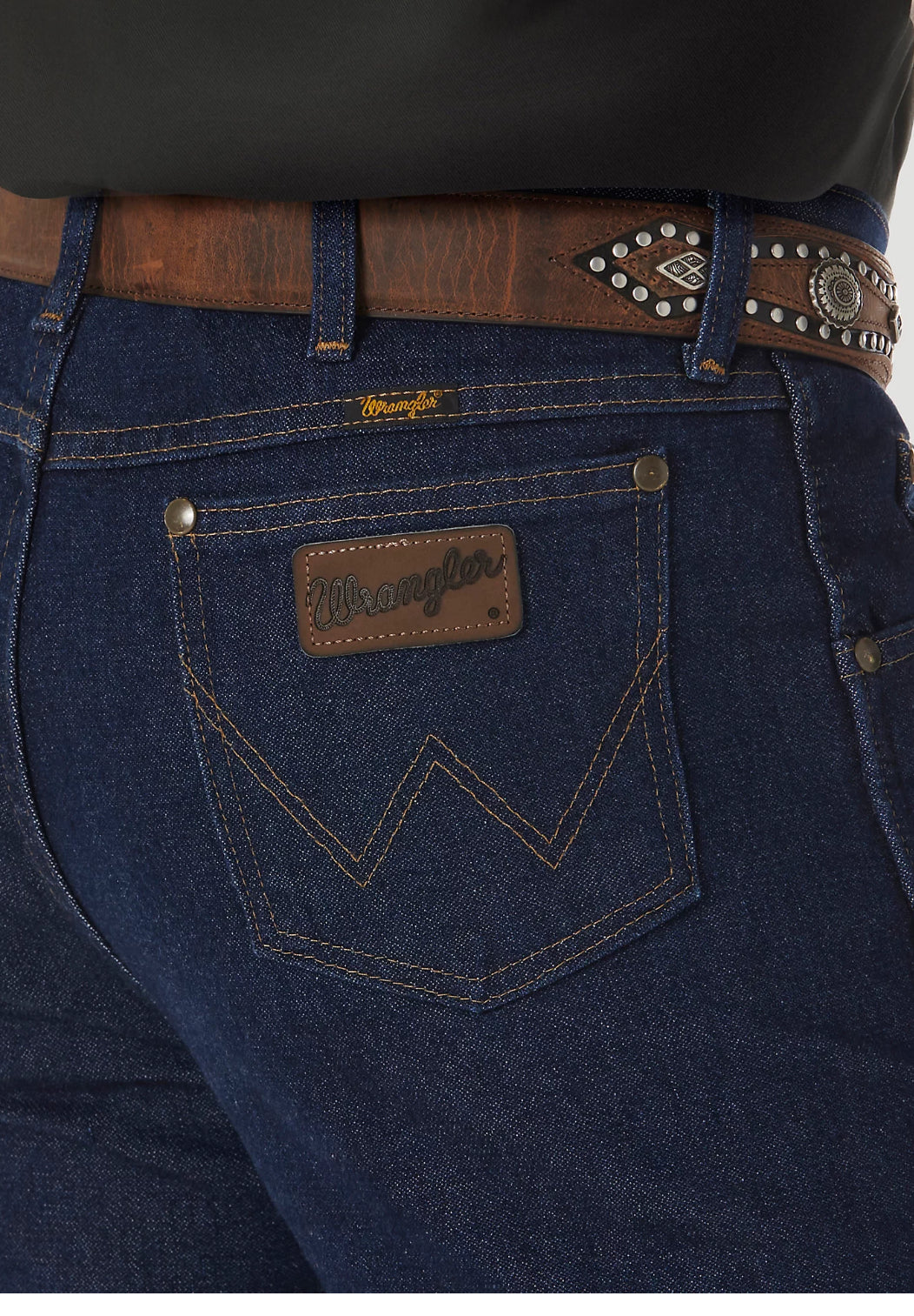 Once you find the perfect fit, there's just no going back. These Cowboy Cut® slim fit jeans place a modern spin on our most popular Western style, the 13MWZ. With 20% longer lasting denim and a more comfortable waist, the Wrangler® Cowboy Cut® men's jeans are guaranteed to get you where you need to go and keep you feeling comfortable. Our Premium Performance Cowboy Cut® slim fit jeans come fully equipped with all the authentically Western details you know and love, including our signature five-pocket styling, deep front pockets, a slim seat, smooth seams, and a full opening from the knee down that fits perfectly over a favorite pair of boots.