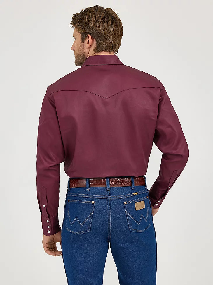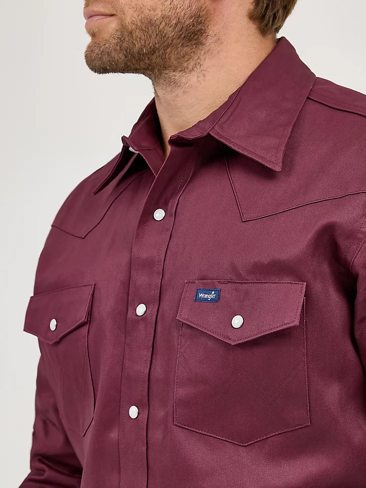 When the going gets tough, you'll be glad to know this shirt has your back. Wrangler® work shirts are a cut above the rest and they have certainly earned their credentials in the eyes of cowboys across the country. These hard-working wardrobe essentials come complete with all the authentic details you know and love about Wrangler® Western shirts, including a spread collar and spade flap snap pockets with snap closure as well as Western-inspired front and back yokes. But we didn't stop there. Wrangler® Cowboy Cut® shirts also come with a convenient pencil slot and the iconic Wrangler® logo riser label on the left pocket. Plus, men's Cowboy Cut® firm finish work shirts feature a rigid look and feel that will last wash after wash.