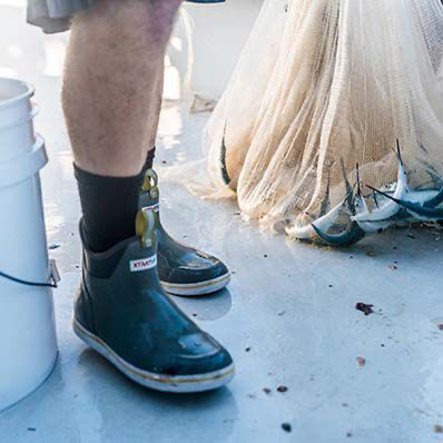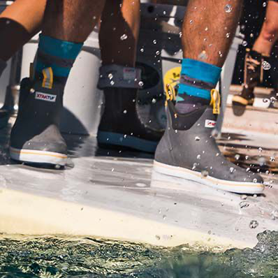 The Ankle Deck Boot collection has been crafted specifically for off-shore anglers. Anglers are athletes, and like any athlete they demand the best footwear to help them perform at a high level. We've created a lightweight design with the same slip-resistant Chevron outsole found on our Legacy boots. The 6" ankle deck boot is a great option for any on-the-water athlete looking for protection with slip-on-and-go styling. This boot is constructed with hand-layed rubber, and so not classified as a commercial grade boot. For those looking for a commercial grade ankle height deck boot please search for the Wheelhouse Boot.